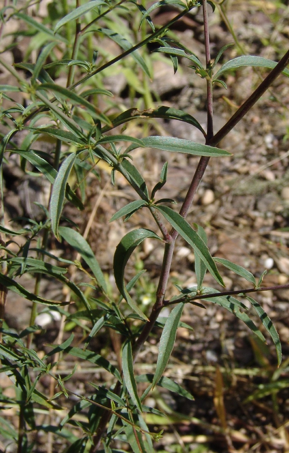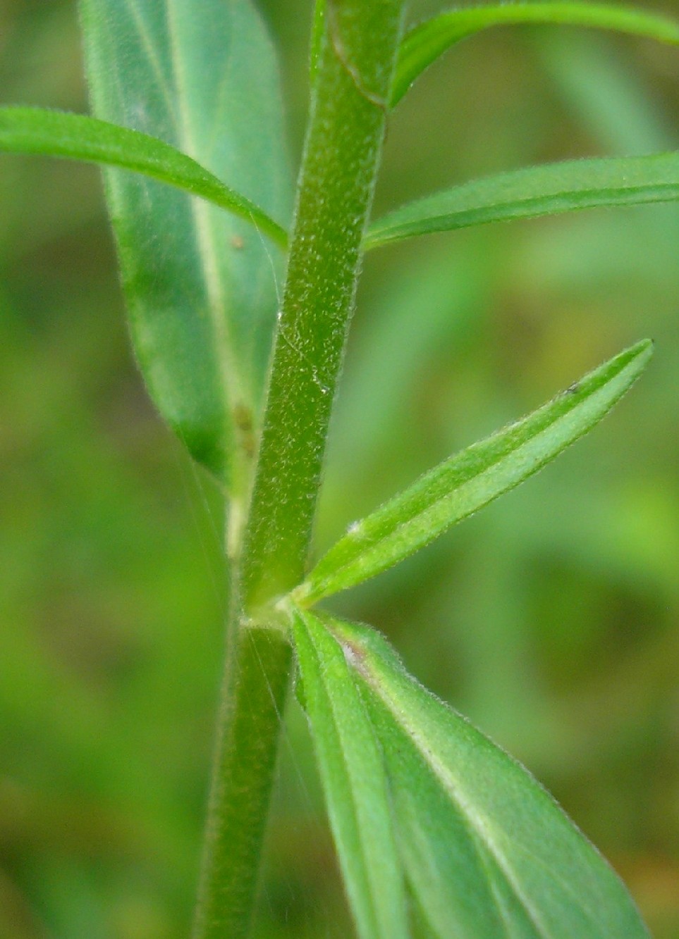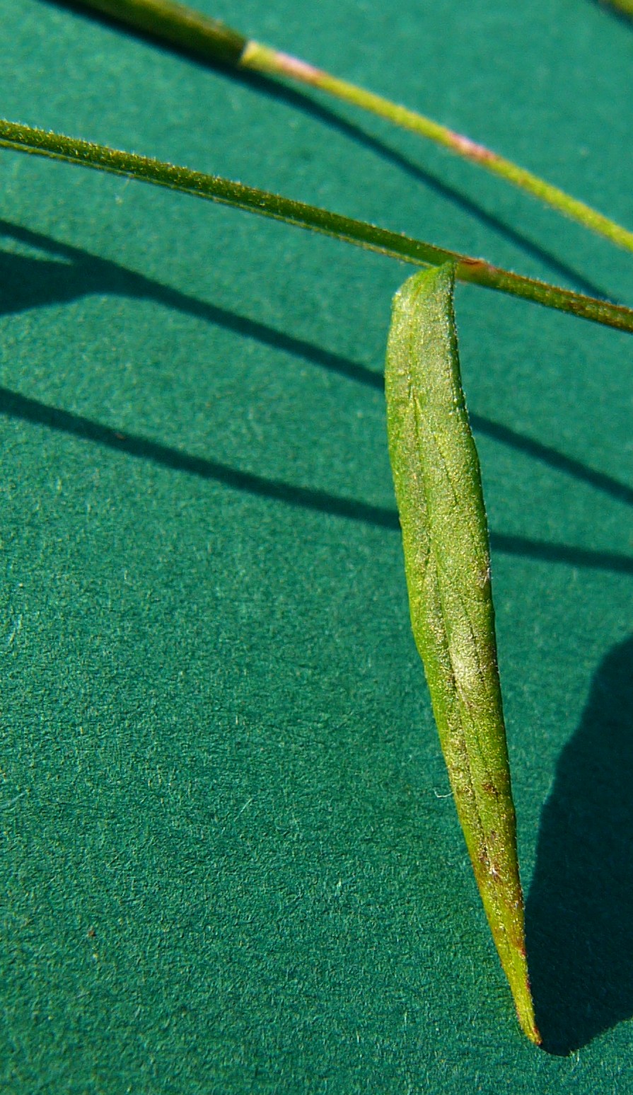 Blätter lineal- lanzettlich 10 - 45 mm lang, 2 - 4 mm breit, fast ganzrandig, bald abfallend