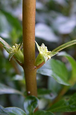 Blüten in den Blattachseln, 4 mm lang mit 2 Vorblättern,
