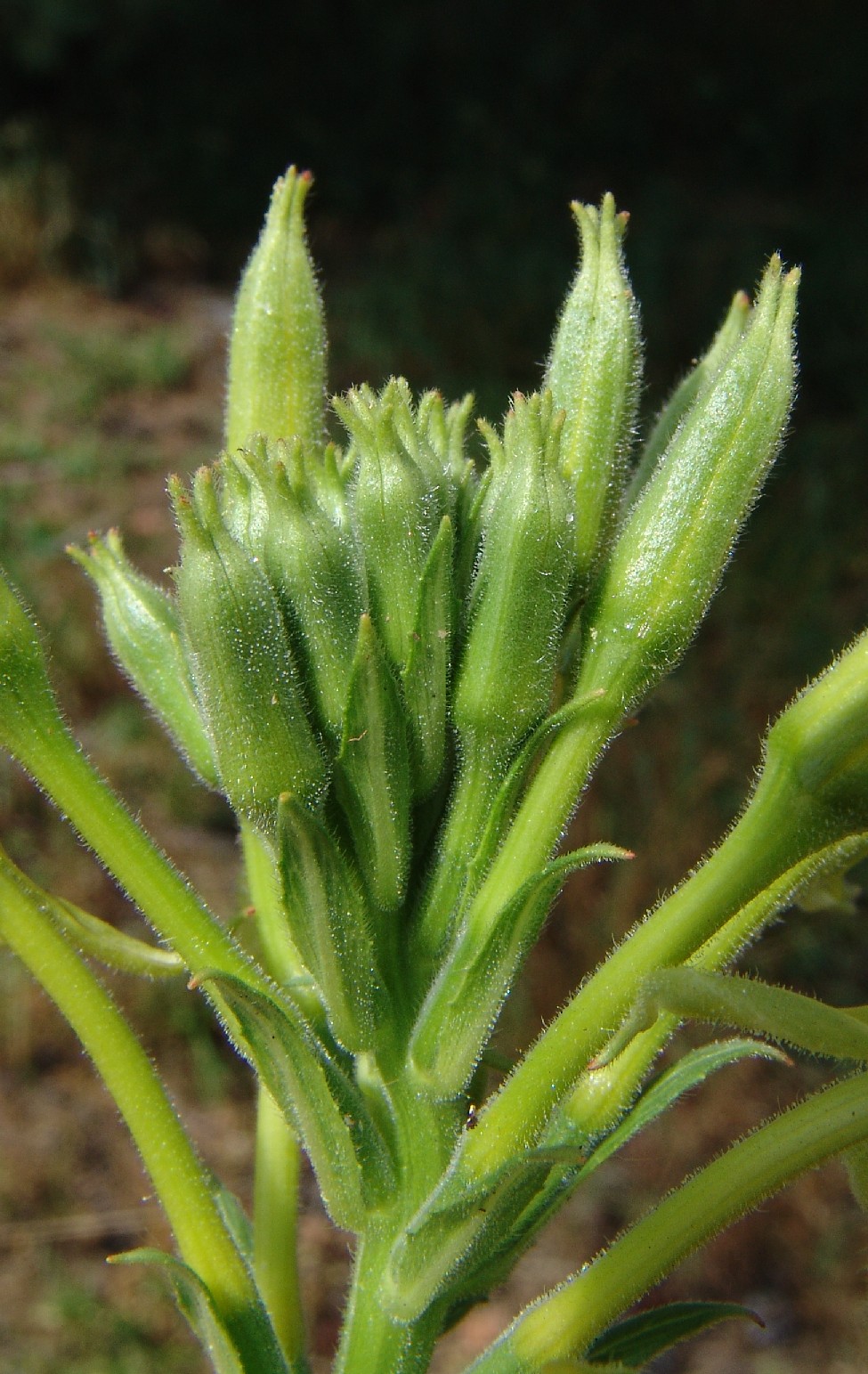 Kapseln 30 - 35 mm lang, schmal, graugrün, weißlich behaart, Kapselzähne ziemlich lang