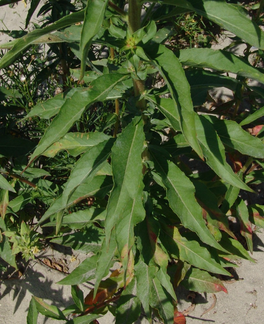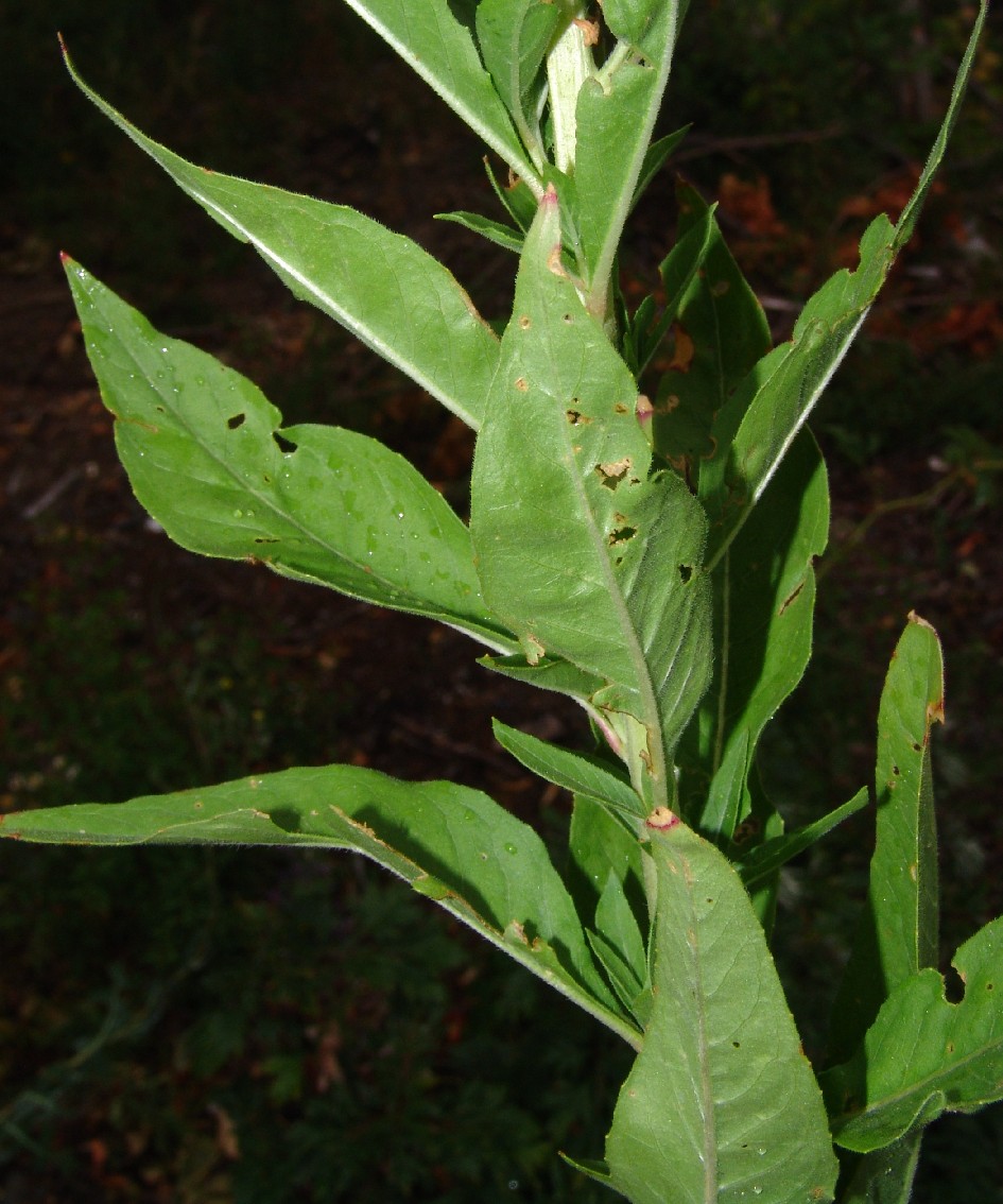 Blätter schmal lanzettlich, am Rand gewellt und etwas buchtig, Mittelnerv weiß