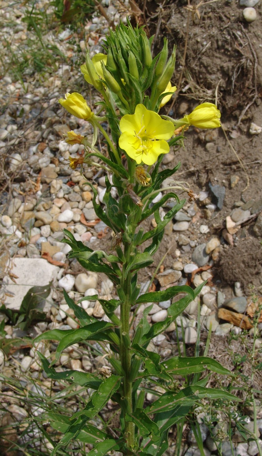 VII - IX, Ruderalstellen, Bahnhöfe, Straßenränder Bastard Oenothera coronifera x Oenothera biennis. Synonyme: English name: Verbreitung