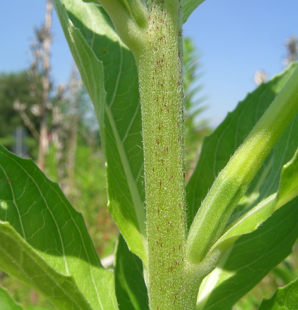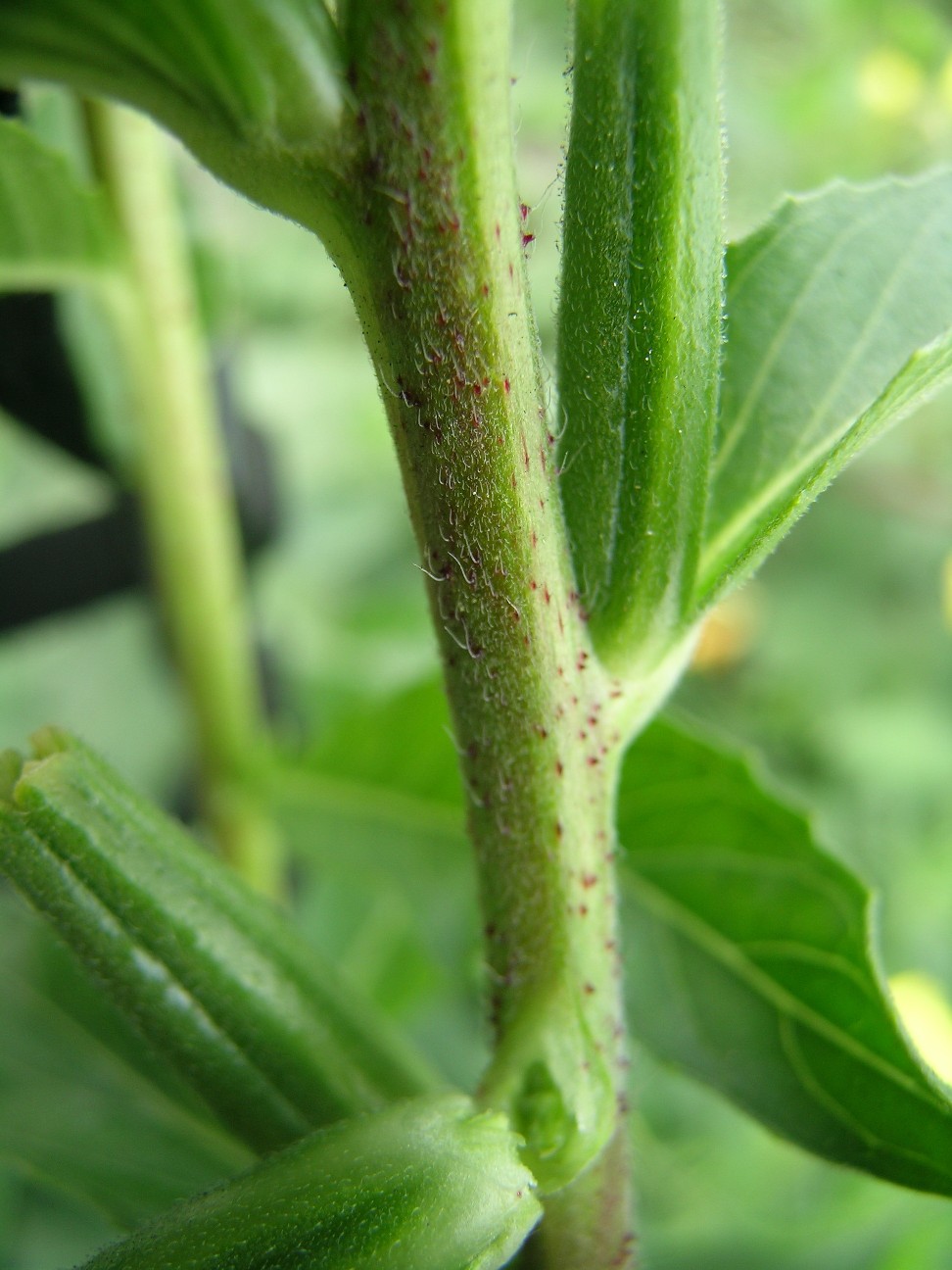 Stängel grünlich bis pfirsichfarben, weißhaarig, rot getupft