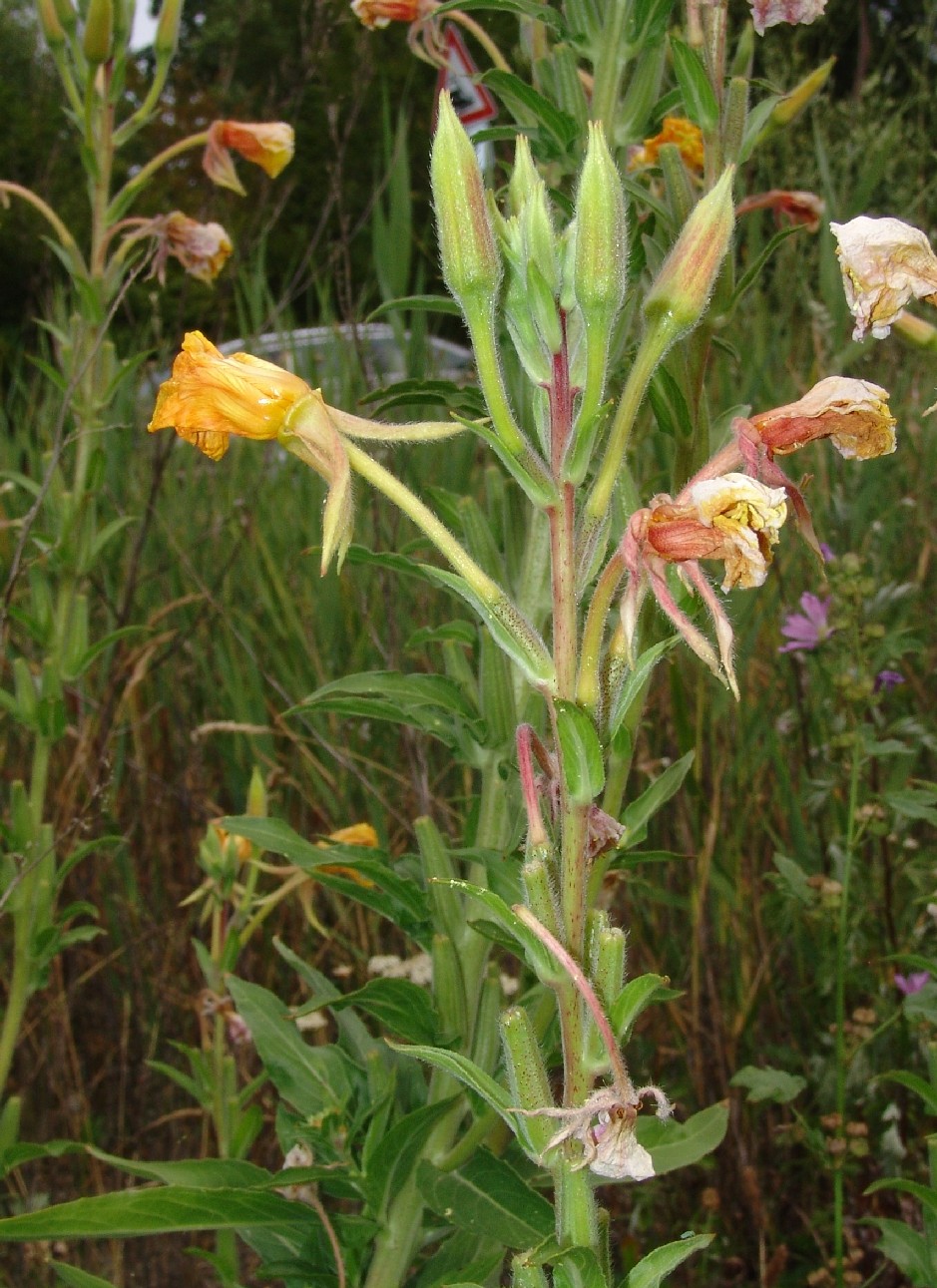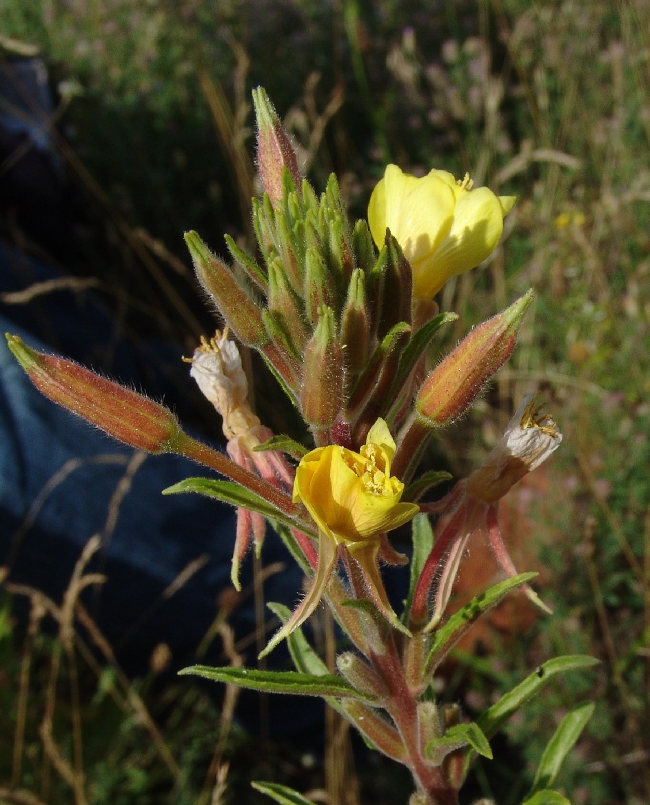 weißen Haaren behaart Blütenstandsachse und Hypanthium teils grün, teils rot > Oenothera drawertii