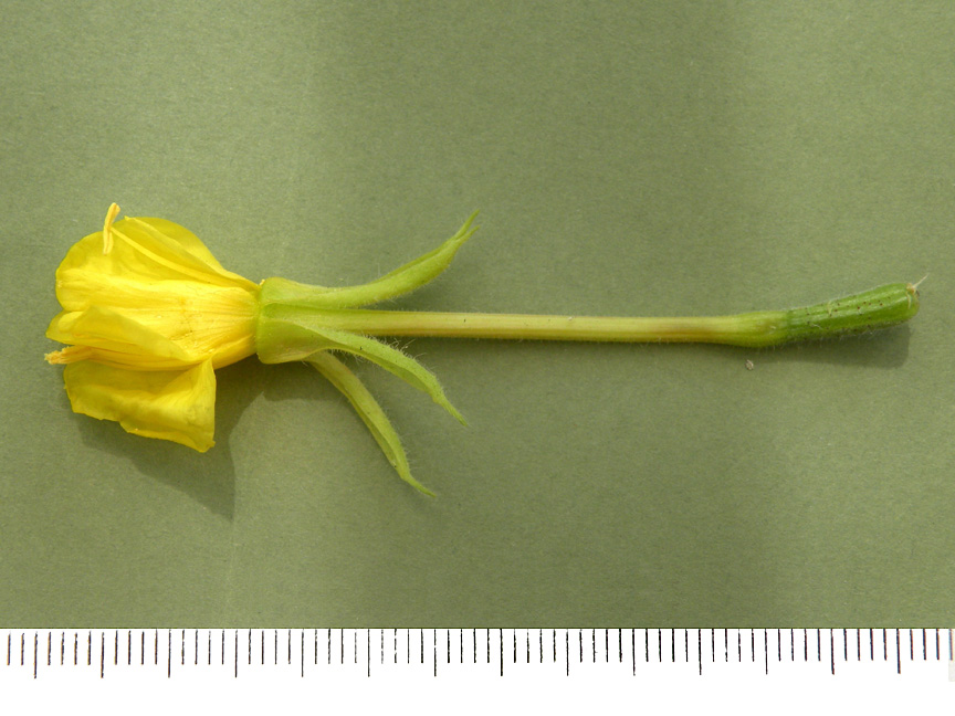 einstängelig, Blüten gelb, Kronblätter 20 - 40 mm lang, Fruchtknoten nicht geflügelt,
