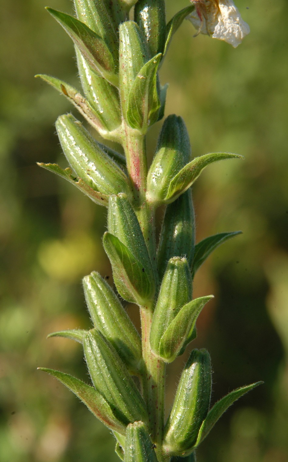Blütenstandsachse rot, stark punktiert, drüsig- borstig