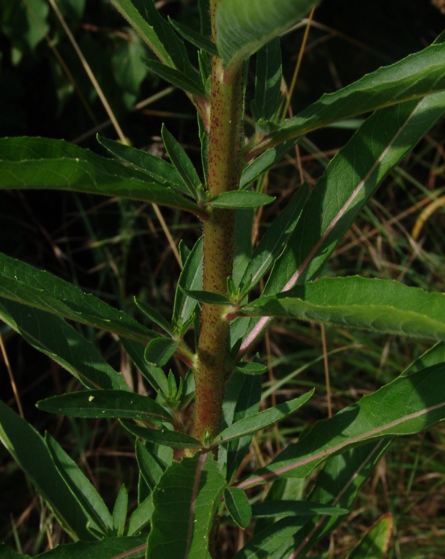 Stängel rot getupft, aber nie auf größere Strecken rot überlaufen, mit kurzen und langen Borstenhaaren