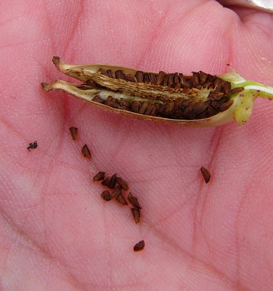 Kapseln klein (20–30 mm), stark drüsig, etwas borstig, rot punktiert, oft rot gestreift, meist relativ dichtstehend. Kapselzähne stumpf, gestutzt, schwach ausgerandet