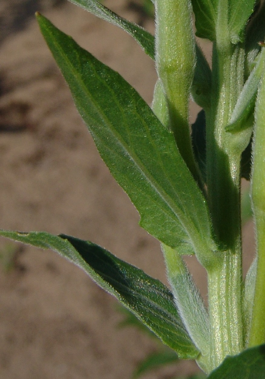 Stängel nicht rot getupft, mit weißen Haaren, im oberen Teil grün, im unteren rötlich