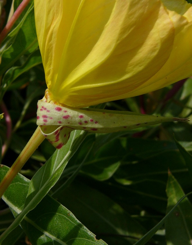 Kelchblätter 20 - 40 mm lang, oft rot gepunktet, zur Blütezeit oft einseitig