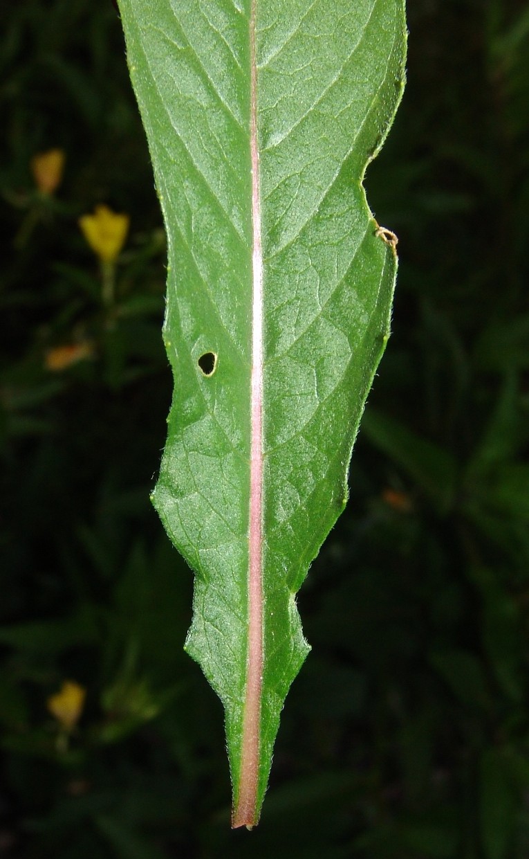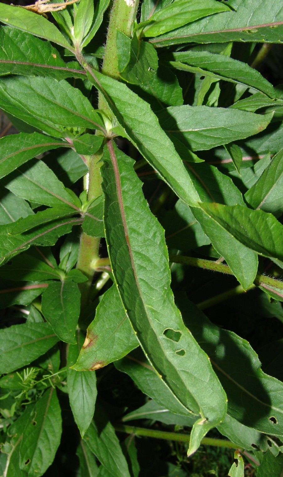 Blütenstandsachse oben rot, unten grün, rot getupft, Kronblätter 12 - 20 mm lang, Kelchzipfel grün, Blätter schwach gezähnt,