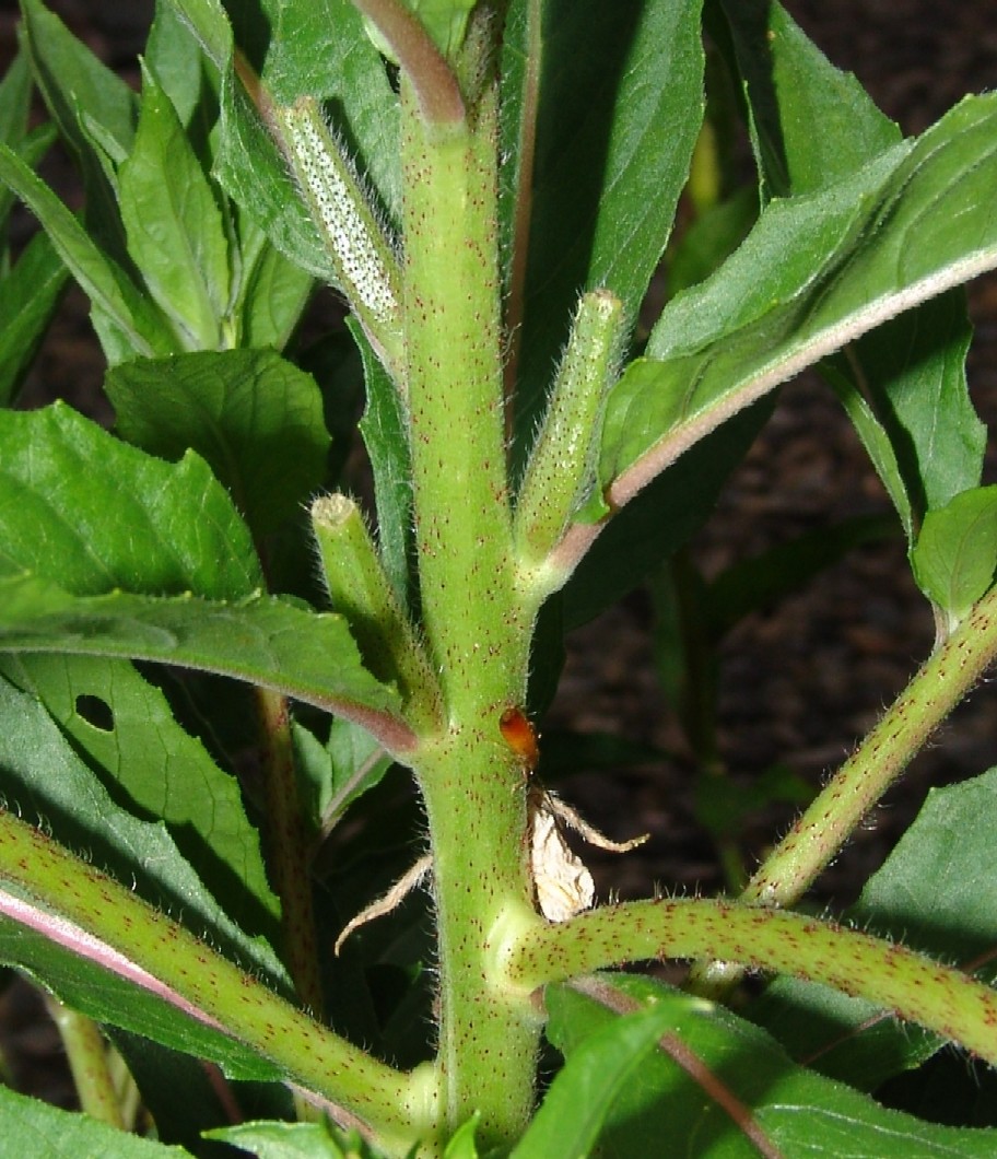 Stängel +/- grün, rot gepunktet, weißhaarig