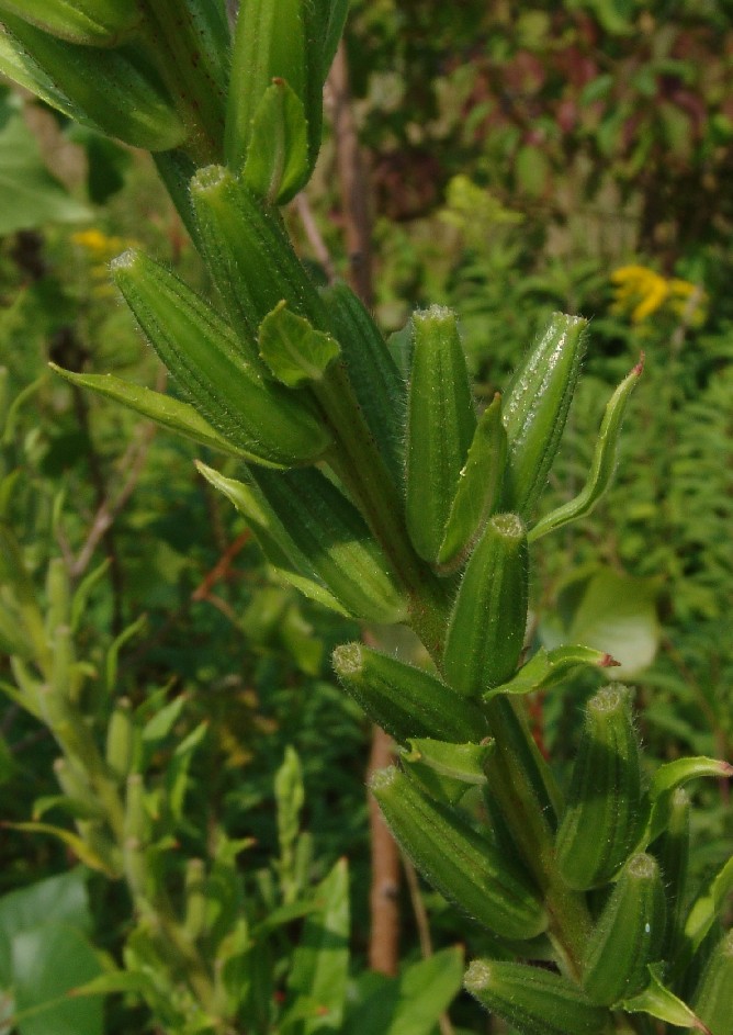 Blütenstandsachse rot getupft, Kronblätter 12 - 20 mm lang, Kelchzipfel grün,
