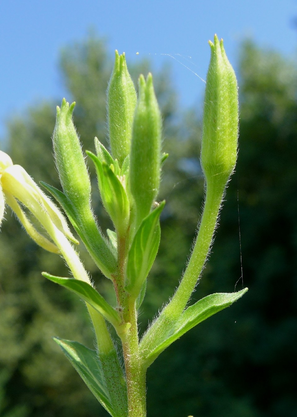 Blütenknospe grün, Kelch 3 - 4 cm lang, Kelchzipfel am Grund eng zusammenstehend, 1,5 - 3 mm