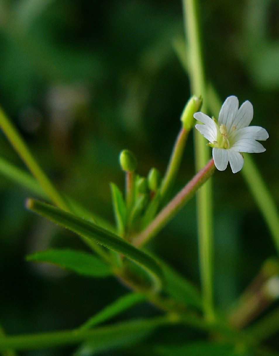 verzweigt Blüten weiß, selten purpurrosa Fruchtstiele 10 - 20 mm lang > 4