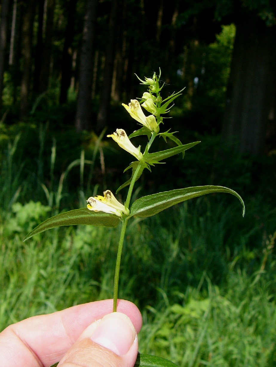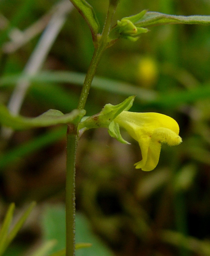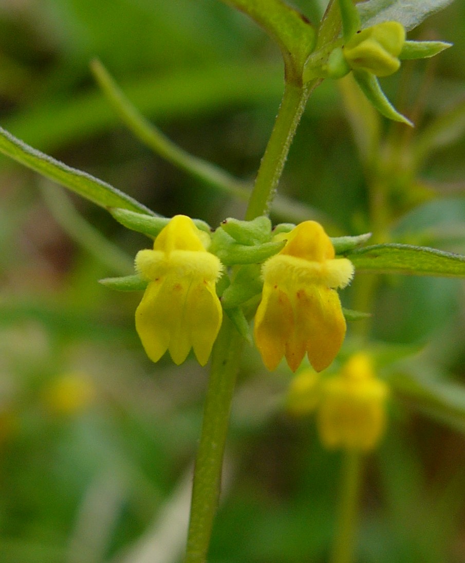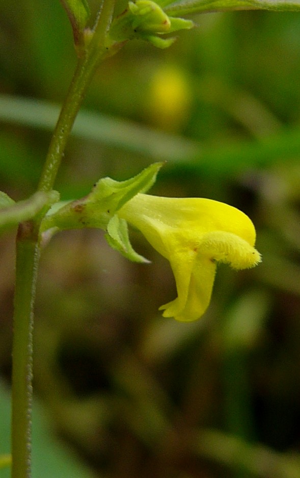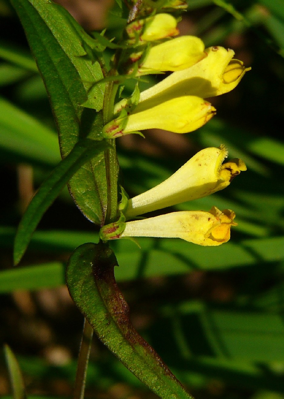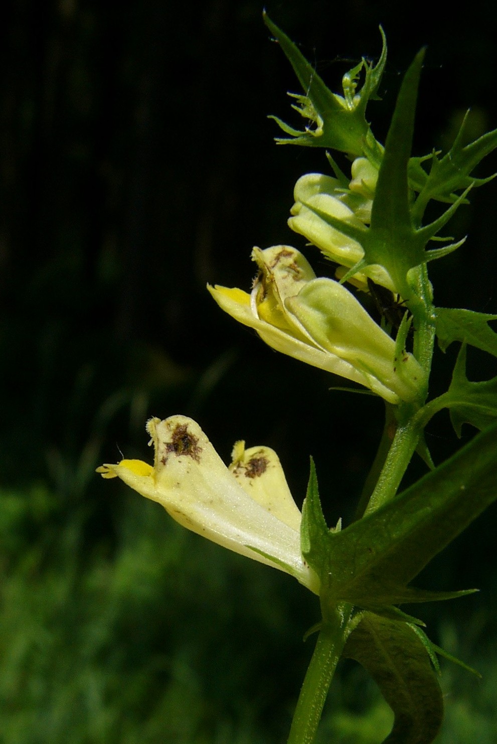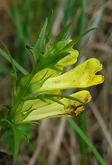 breit, Untere Tragblätter deutlich größer als die oberen, laubblattähnlich, meist ganzrandig Blüten gelb, weißlich mit gelben Lippen, manchmal auch violett überlaufen Blüten 12 - 20 mm lang, Oberlippe behaart, Schlund geschlossen oder wenig geöffnet, Kronröhre