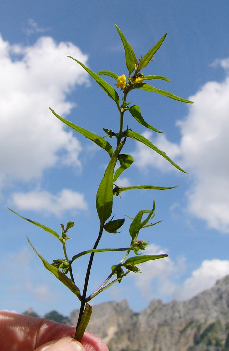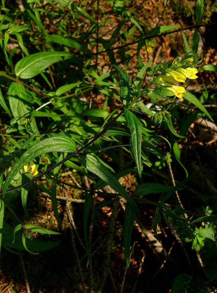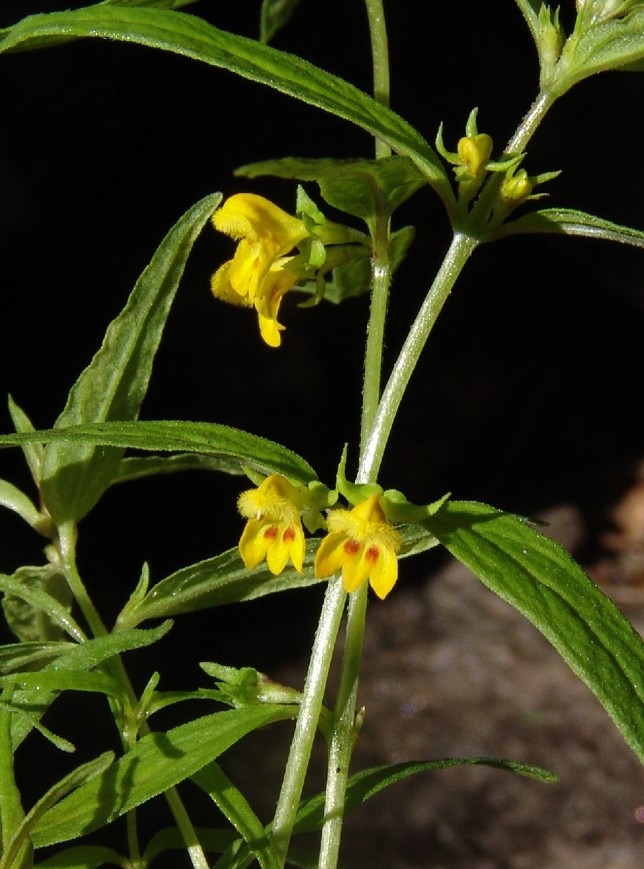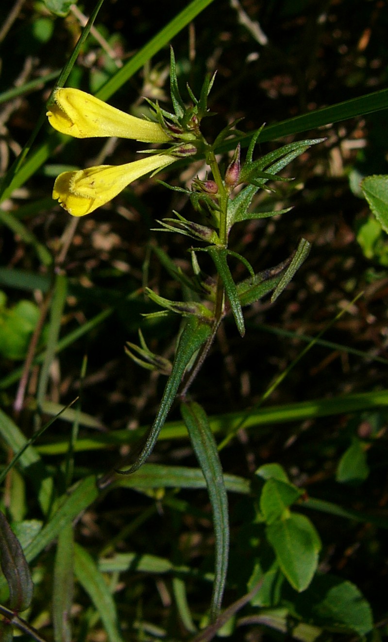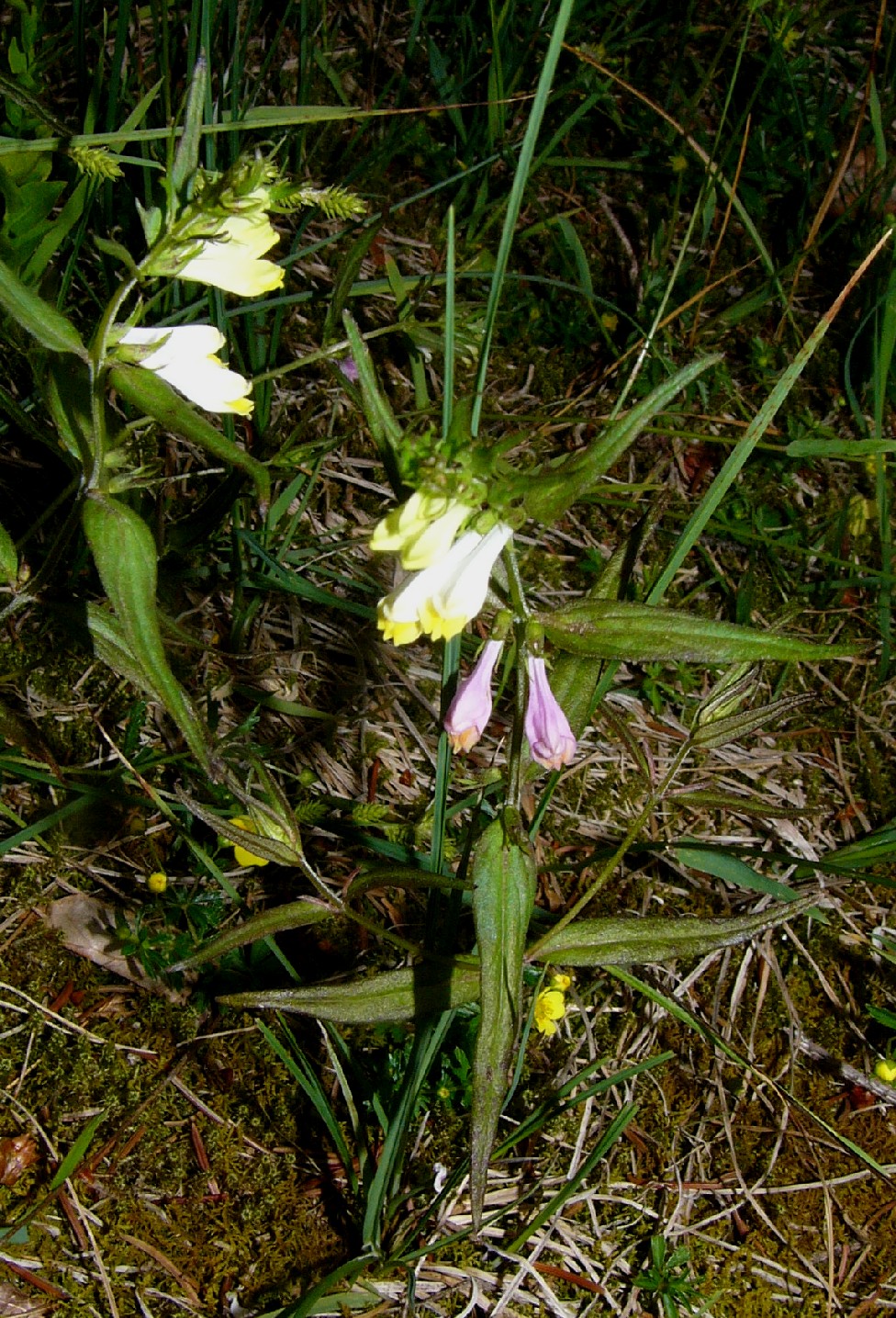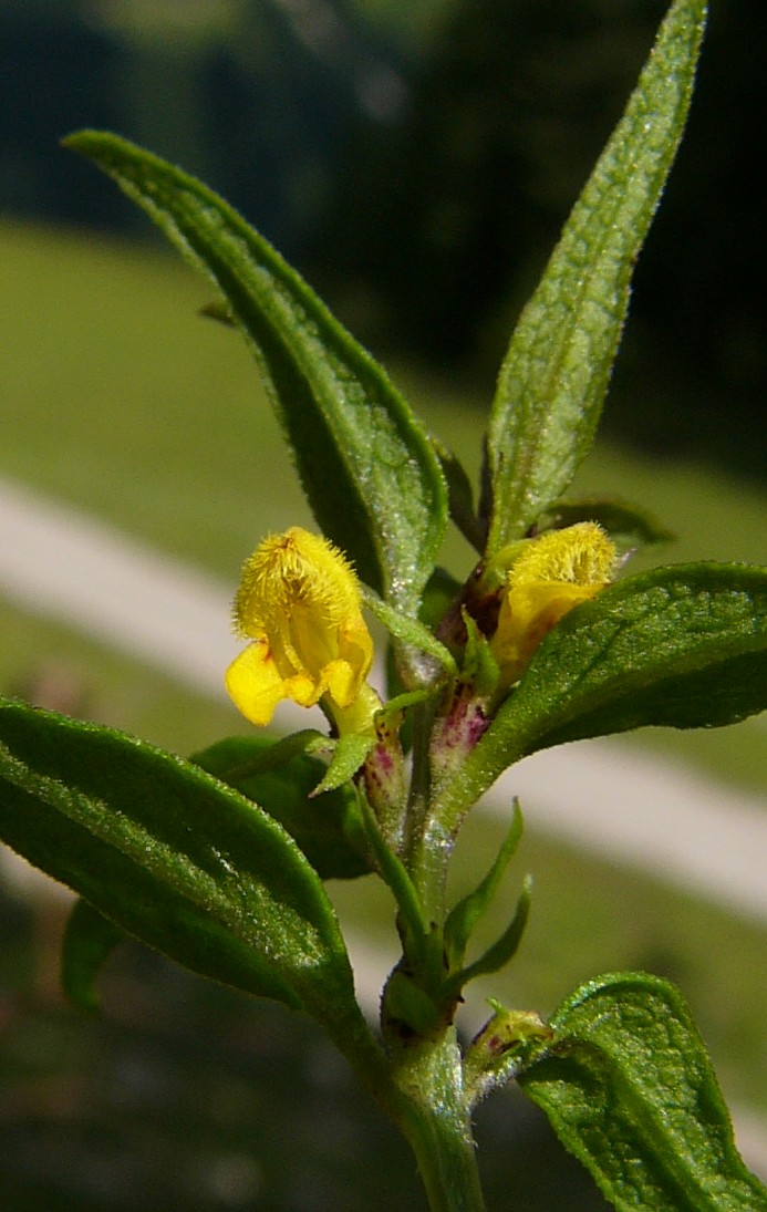 breit, Untere Tragblätter deutlich größer als die oberen, laubblattähnlich, meist ganzrandig Blüten gelb, weißlich mit gelben Lippen, manchmal auch violett überlaufen Blüten 12 - 20 mm lang, Oberlippe behaart, Schlund geschlossen oder wenig geöffnet, Kronröhre