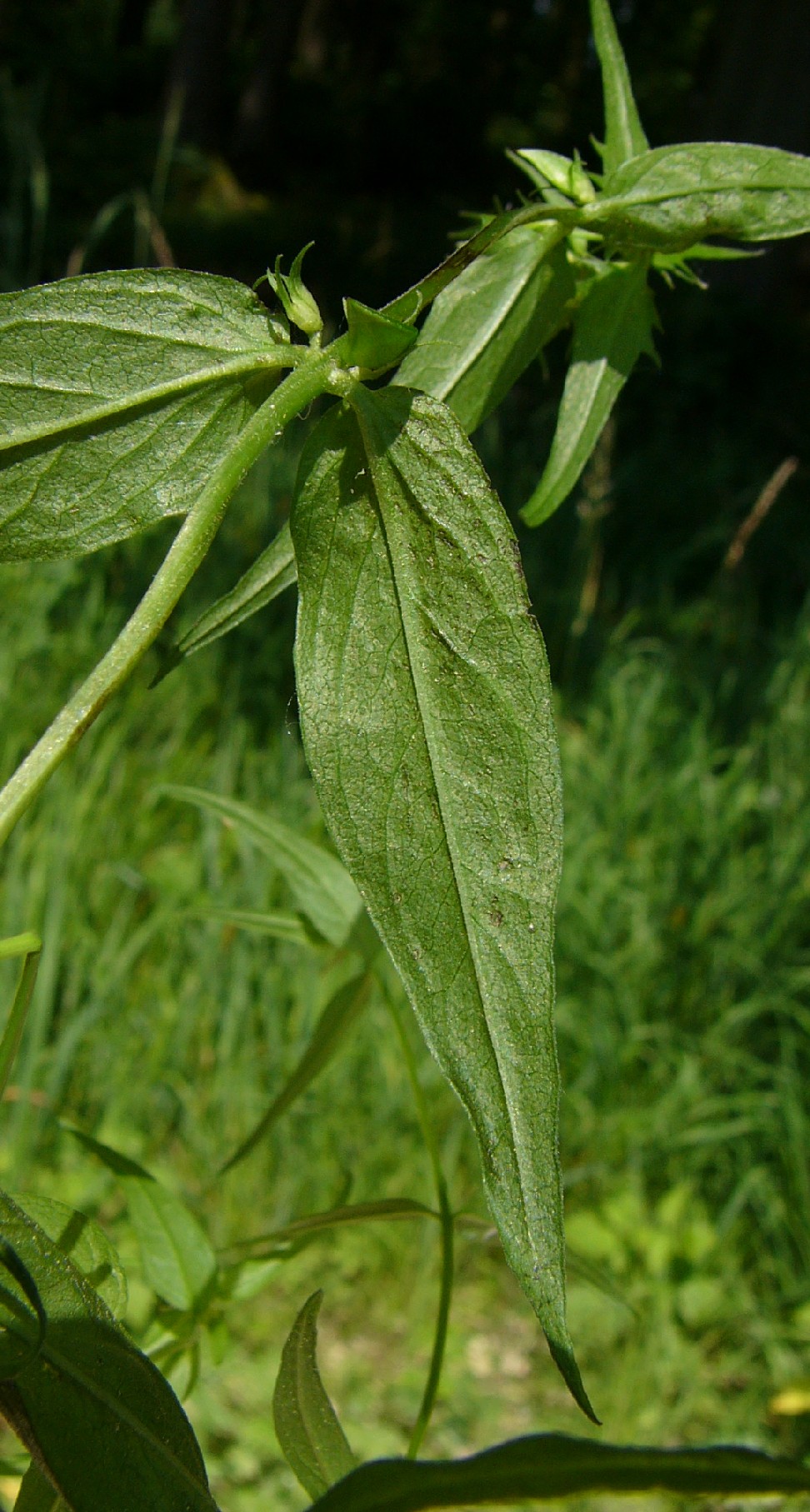Blätter gegenständig, 30 - 50 mm lang, 3 - 7 mm