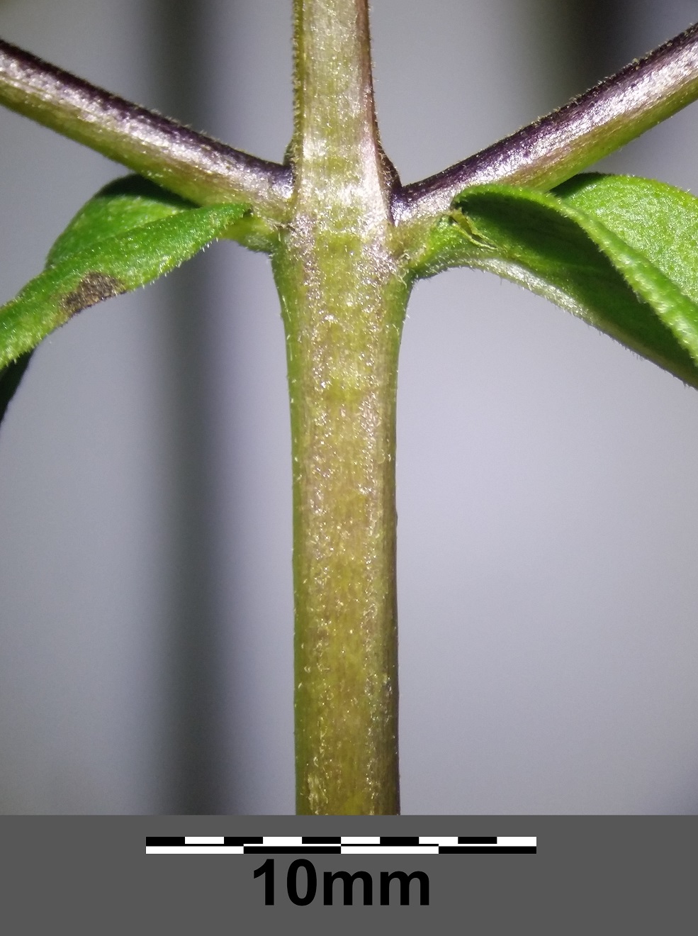 - 8 mm breit, kaum länger als der Kelch, Stängel kantig, kurzhaarig