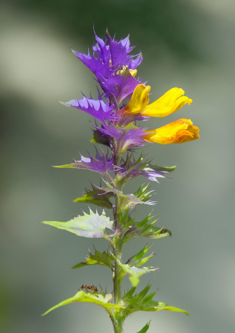 Blütenstandsachse sichtbar, Tragblätter der Blüten im oberen Teil violett,