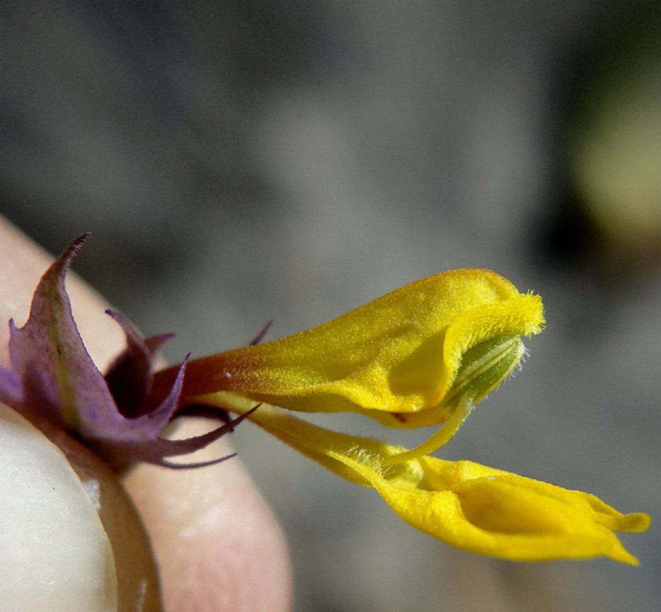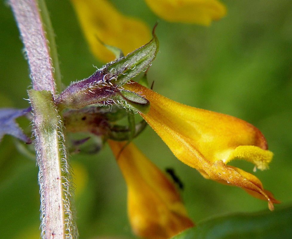 Kelch 8 mm lang, Kelchzähne lanzettlich, lang ausgezogen, nach oben gebogen, mit langen Haaren am Rand und auf den kräftigen Adern, 3 x so lang wie die Kelchröhre