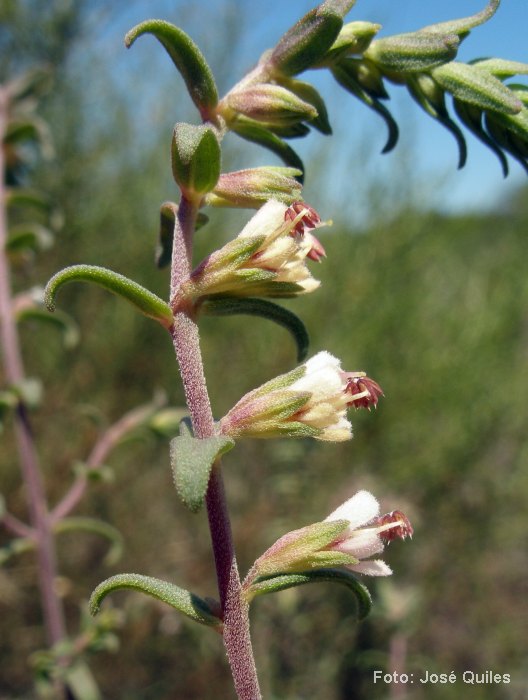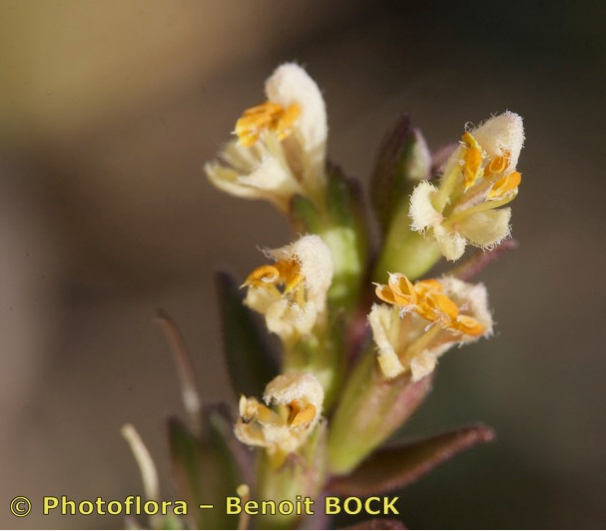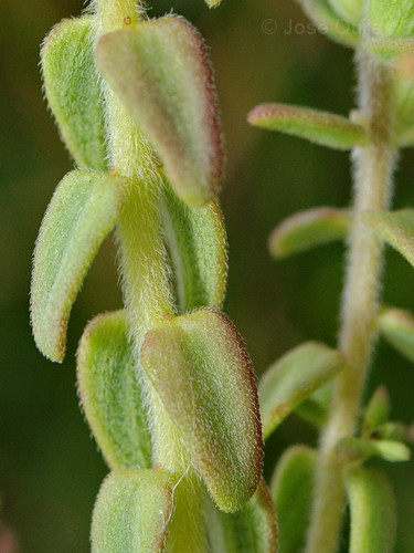 Blütenstand von unten nach oben aufblühend (acropetal) d.h. Früchte unterhalb der Blüten, Tragblätter lanzettlich oder elliptisch, 5 - 8 mm lang, 2 - 4 mm breit, ganzrandig, behaart, meist kürzer als die Blüten