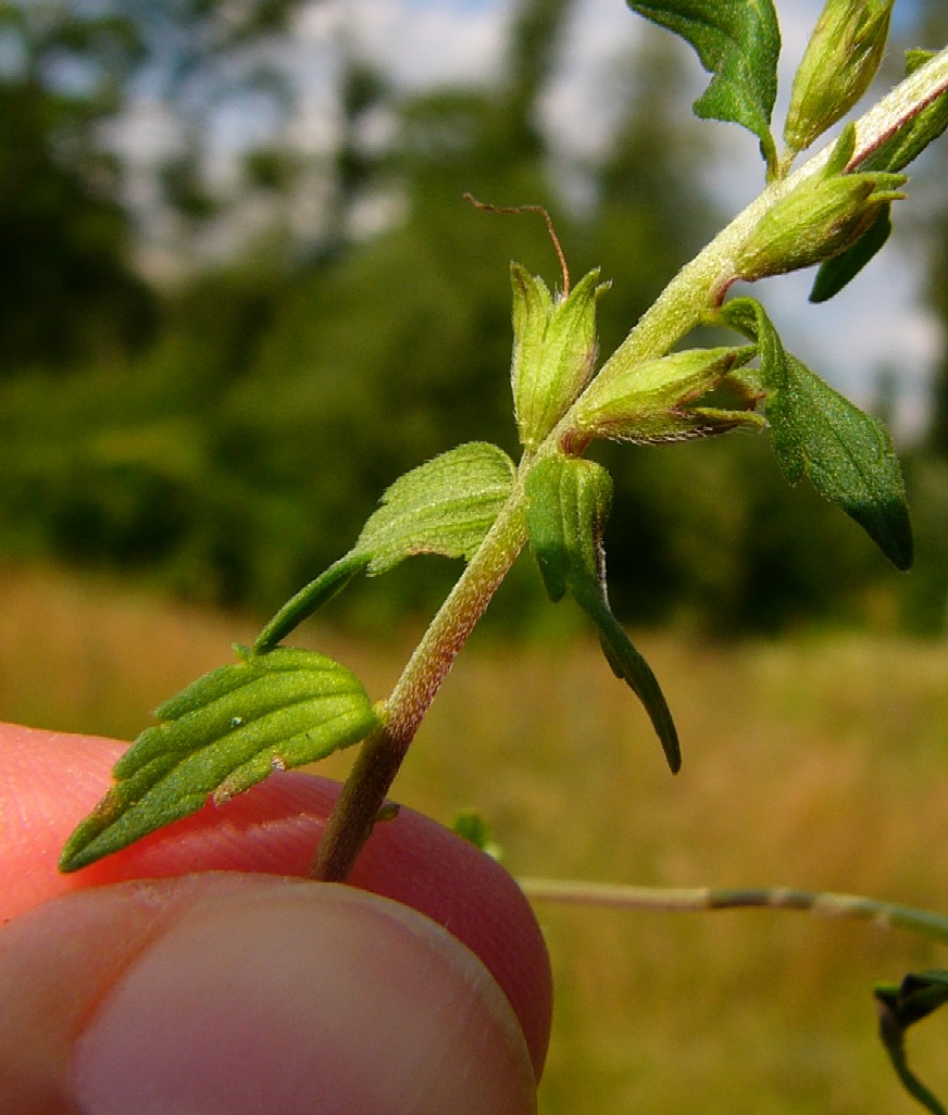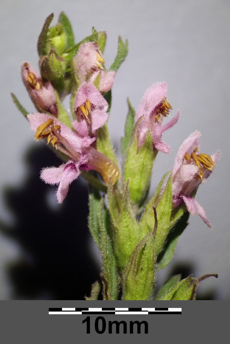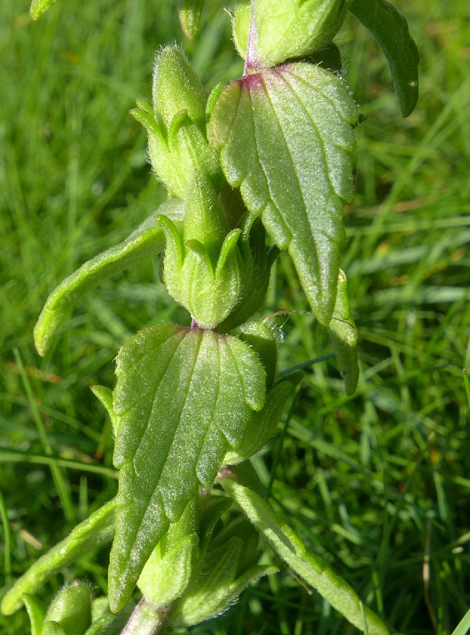 Odontites - Blüten rot, außen behaart, Kelch nicht drüsig, Blätter gezähnt