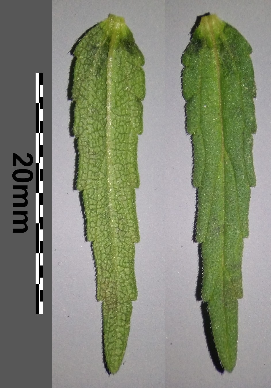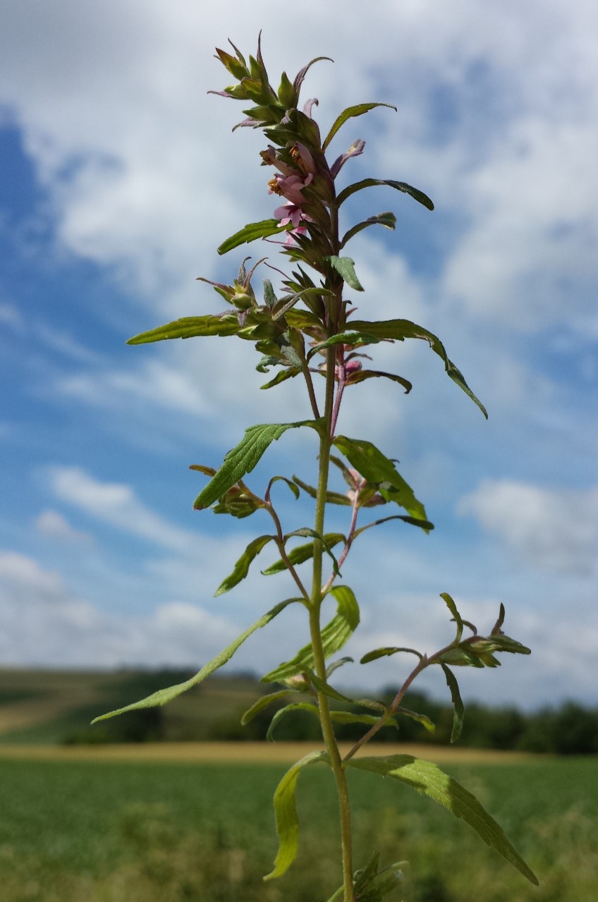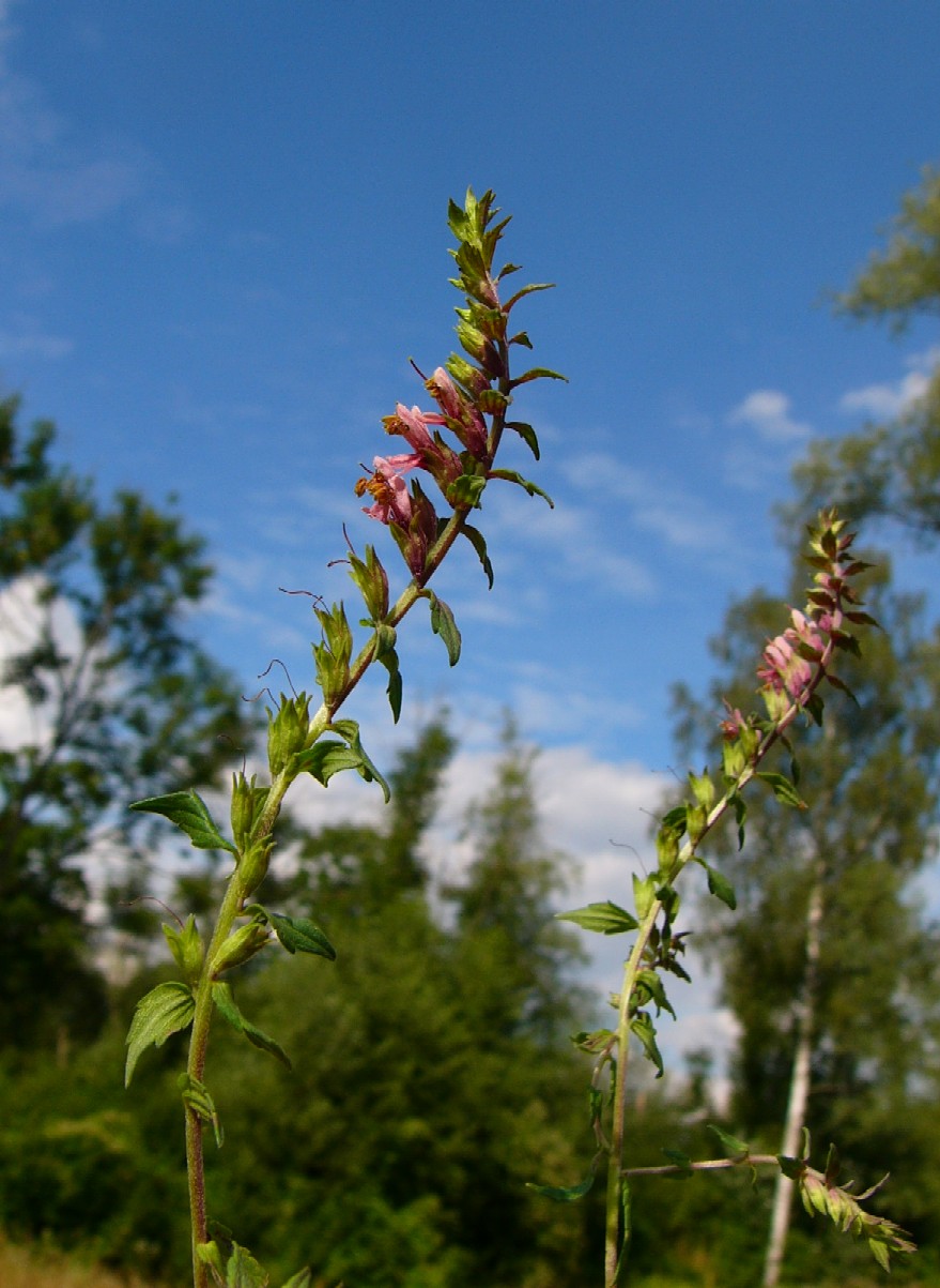 Odontites - Blüten rot, außen behaart, Kelch nicht drüsig, Blätter gezähnt
