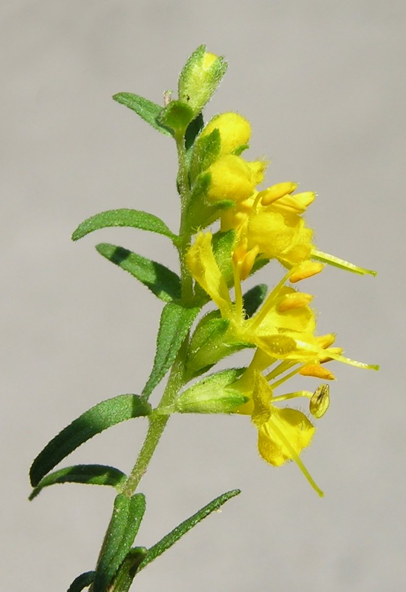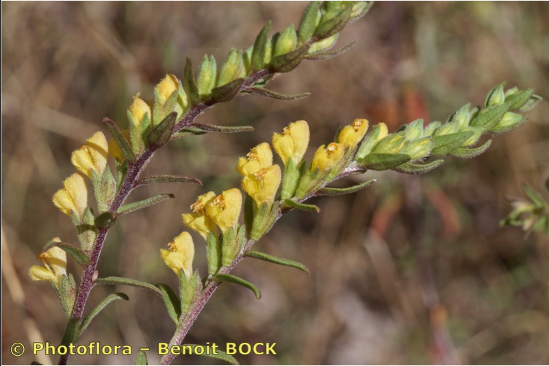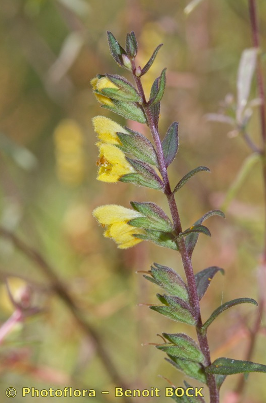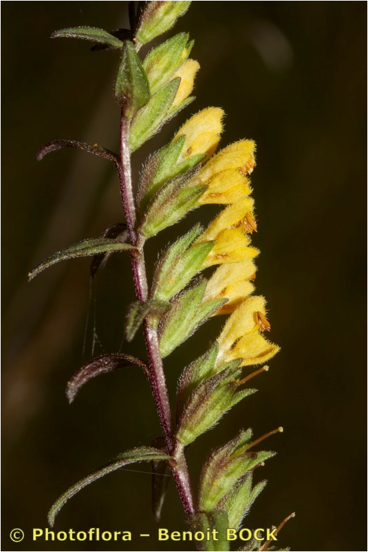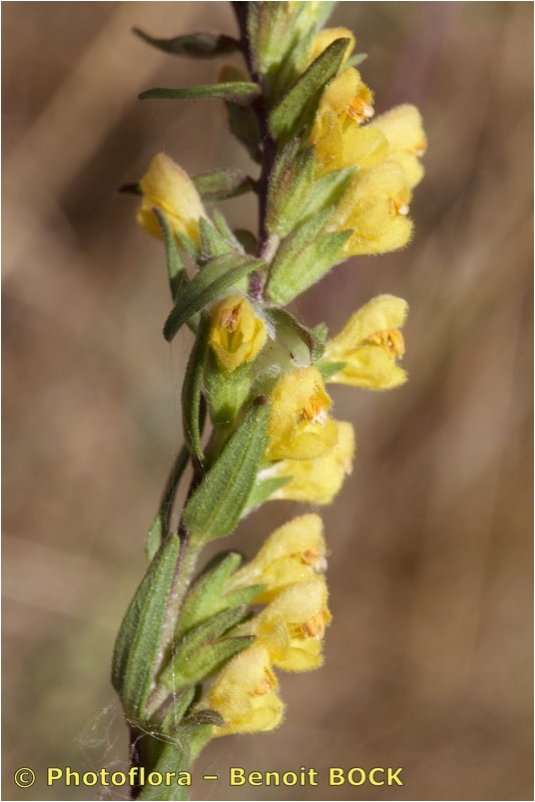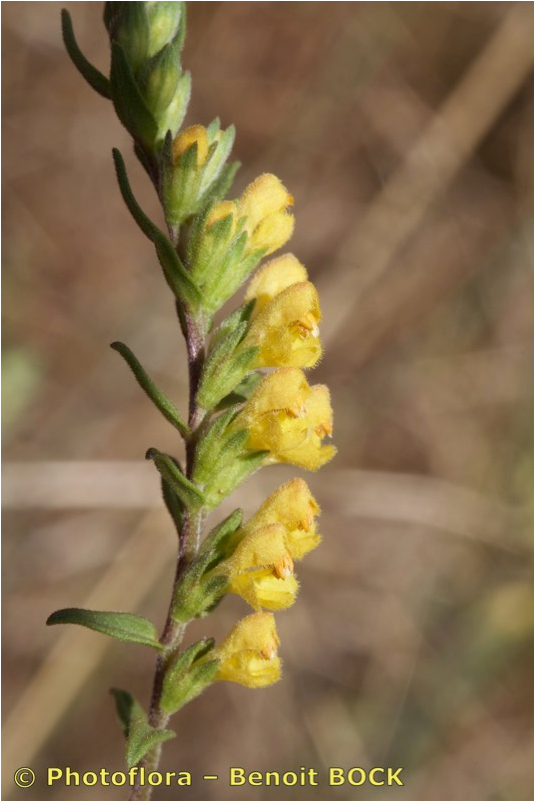 Odontites - Pflanze aufrecht, ohne nichtblühenden Trieben, Blüten gelb, außen behaart, Kelch nicht drüsig