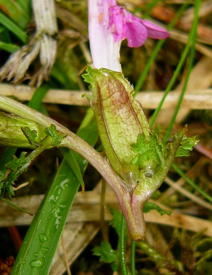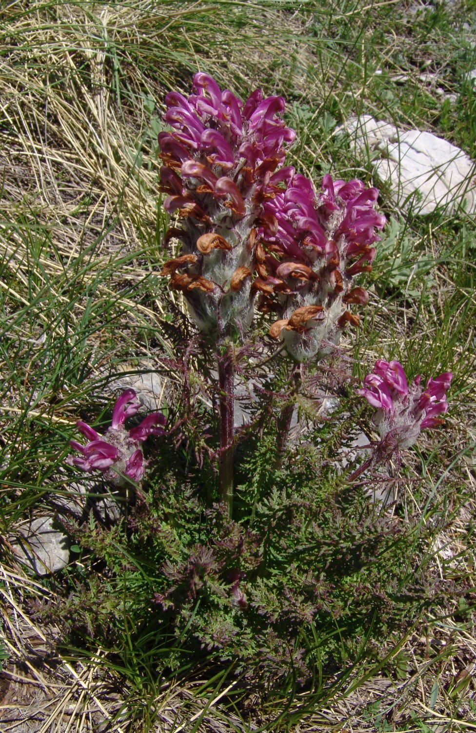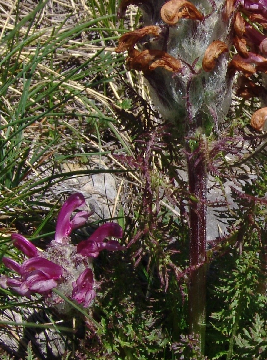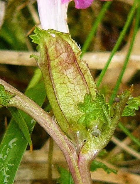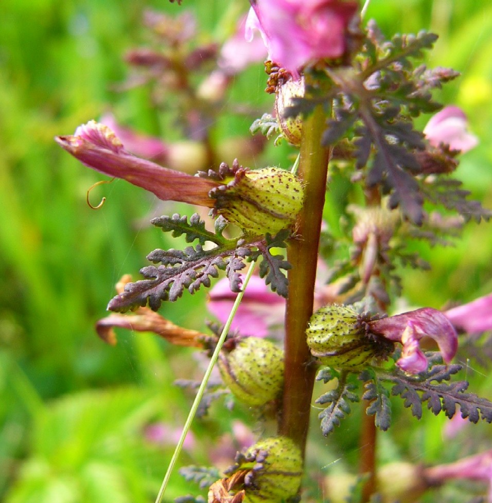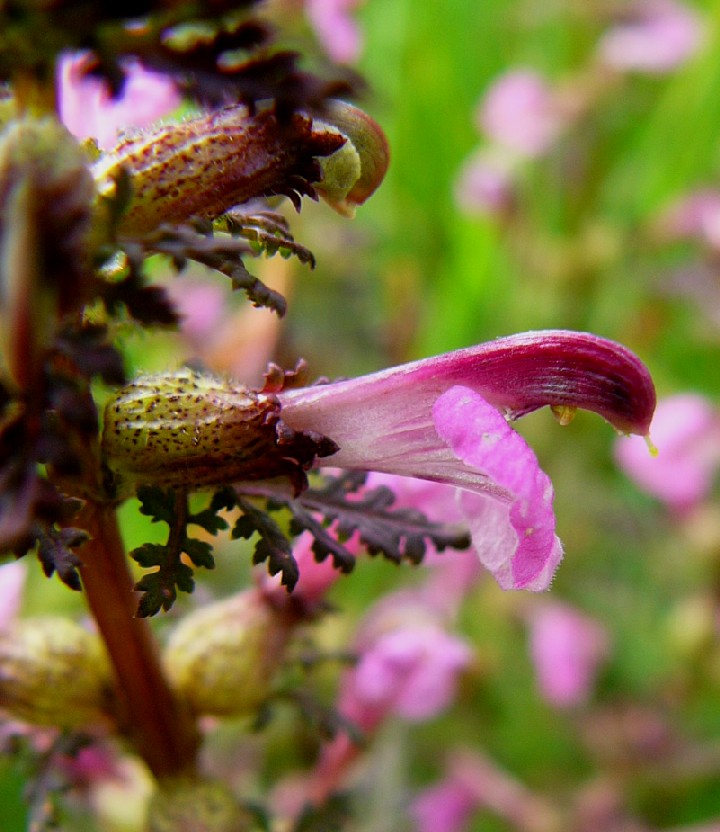 Pedicularis - Blüten rot oder rosa, Oberlippe sichelförmig gekrümmt, mit kurzem Schnabel und seitlichen Zähnen