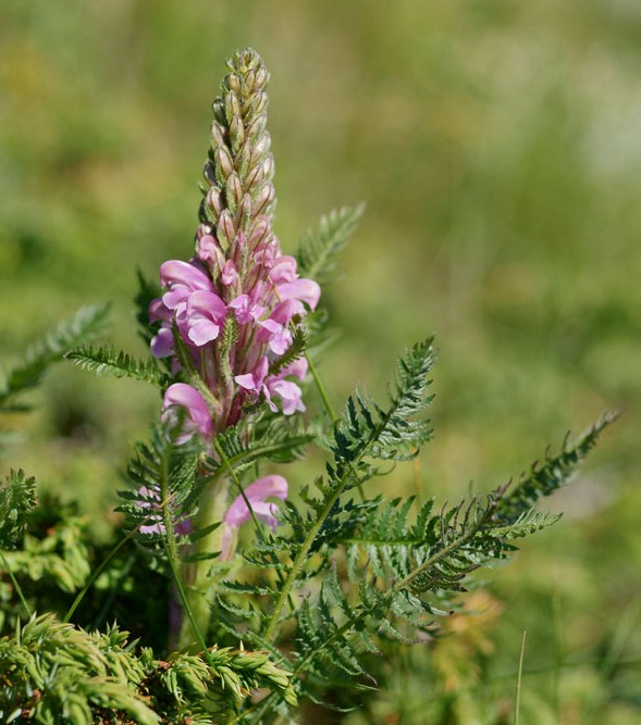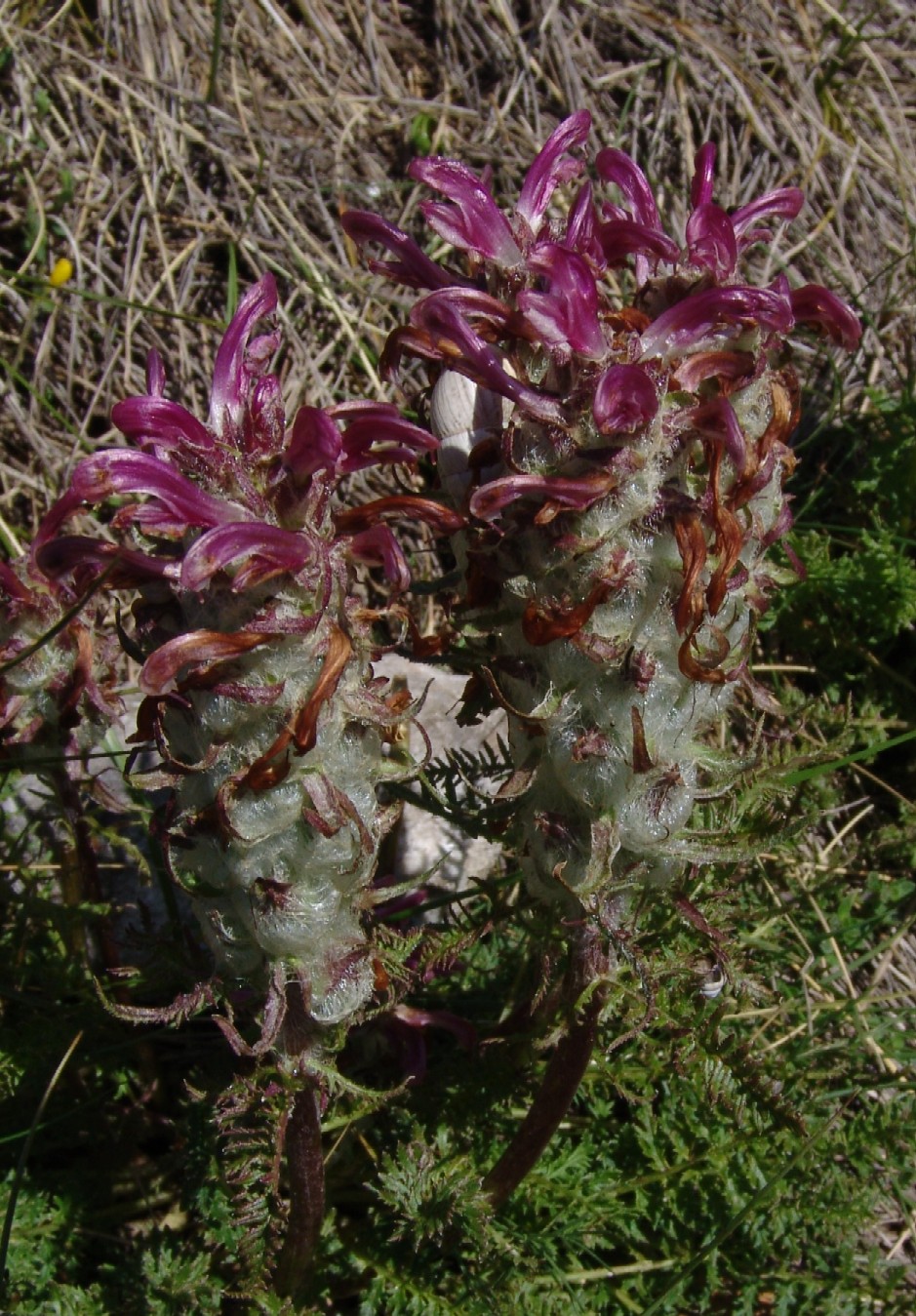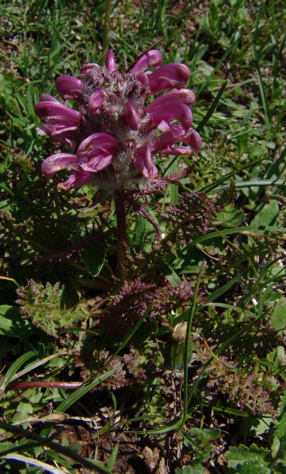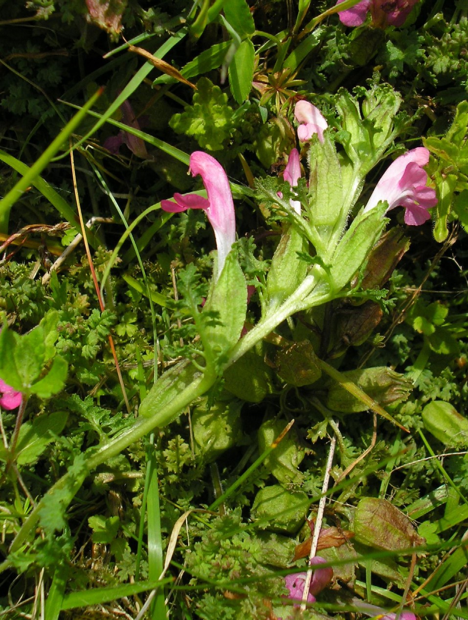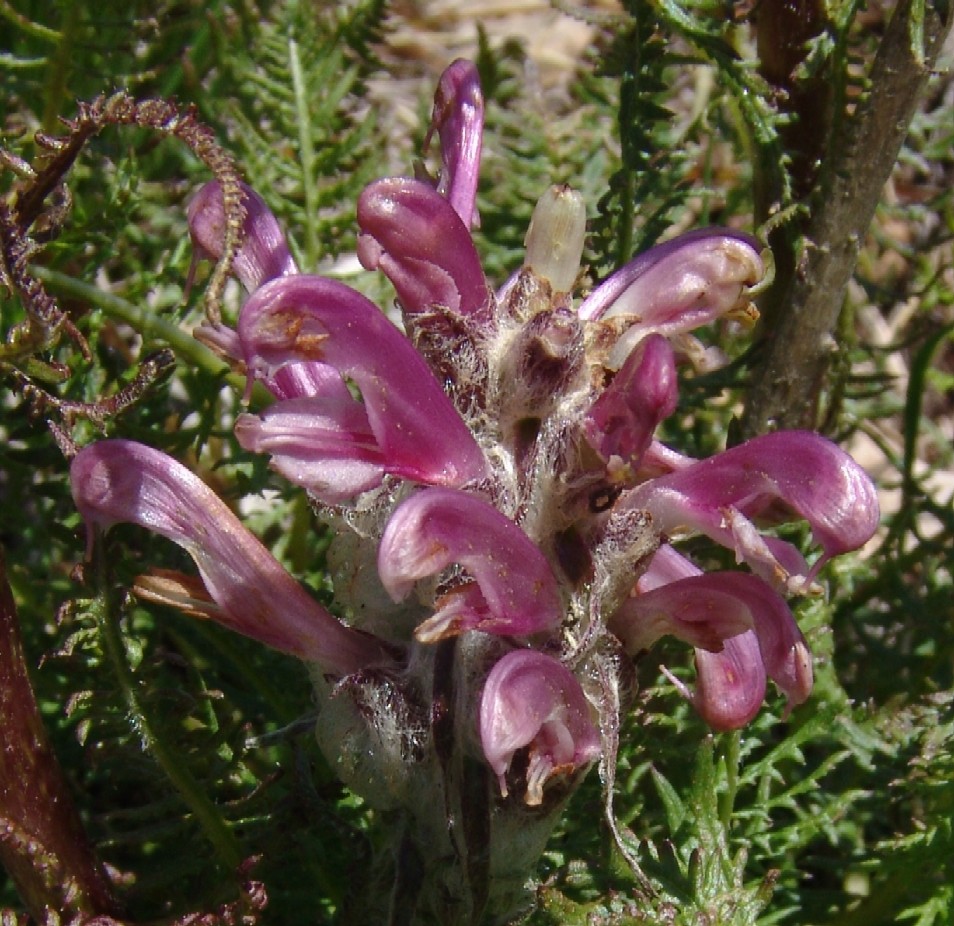 Pedicularis - Blüten rot oder rosa, Oberlippe sichelförmig gekrümmt, mit kurzem Schnabel und seitlichen Zähnen