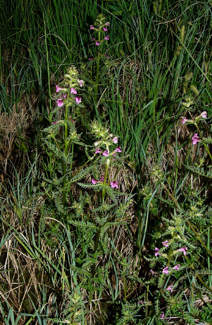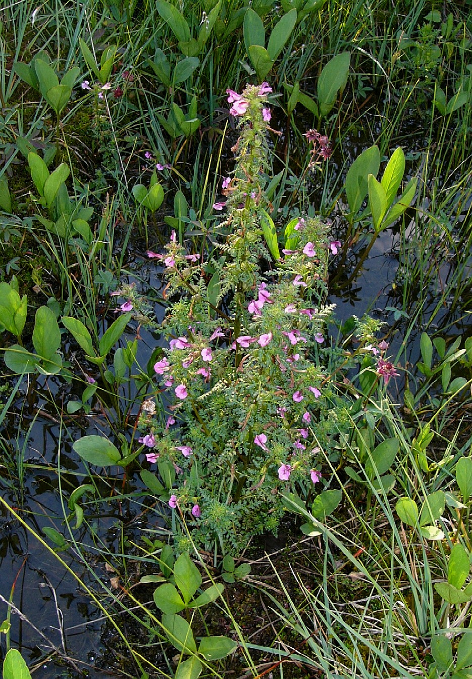 V - VIII, Moore (0 - 1800 m) Synonyme: English name: Nom francais: Nome italiano: Weltweite Verbreitung: Bei Pedicularis palustris ist das Merkmal der Sektion Pedicularis (Blüten mit kurzem Schnabel, der in 2 Zähne ausläuft) oft nicht deutlich ausgeprägt, weswegen ich Pedicularis palustris nochmals bei der Sektion Anodontae aufgeführt habe.