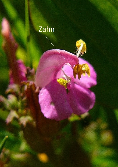 Blüten 15 - 25 mm lang, rosa, Unterlippe kahl