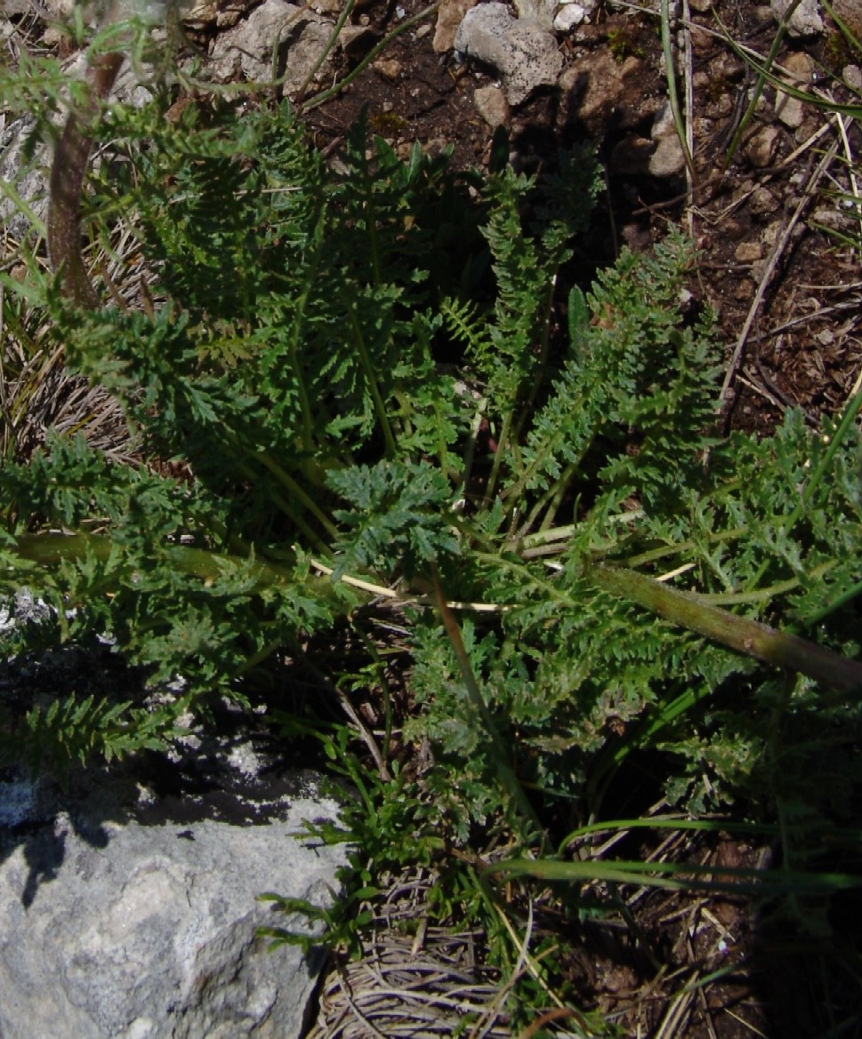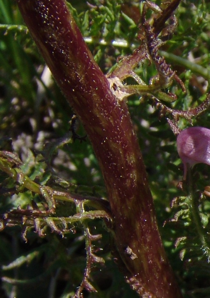 Stängel im oberen Teil behaart, Blätter bis auf den Blattstiel kahl, 2- fach gefiedert,
