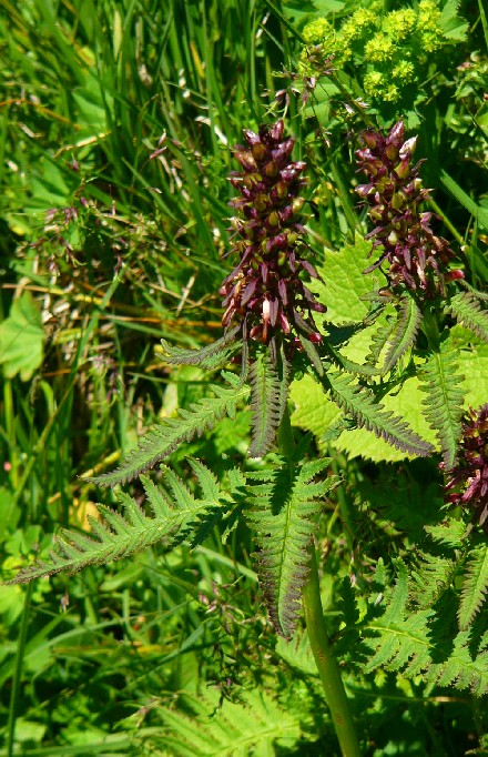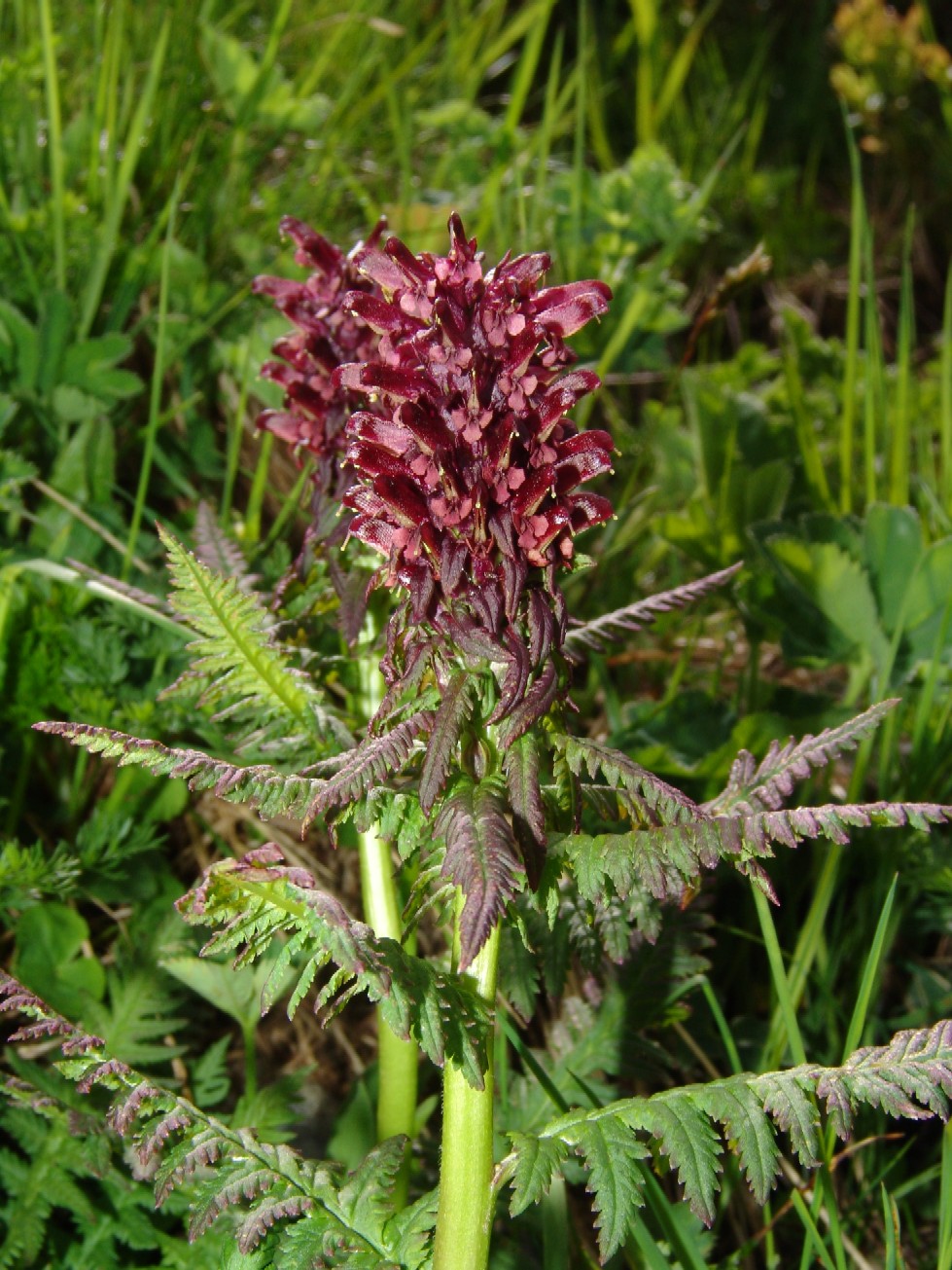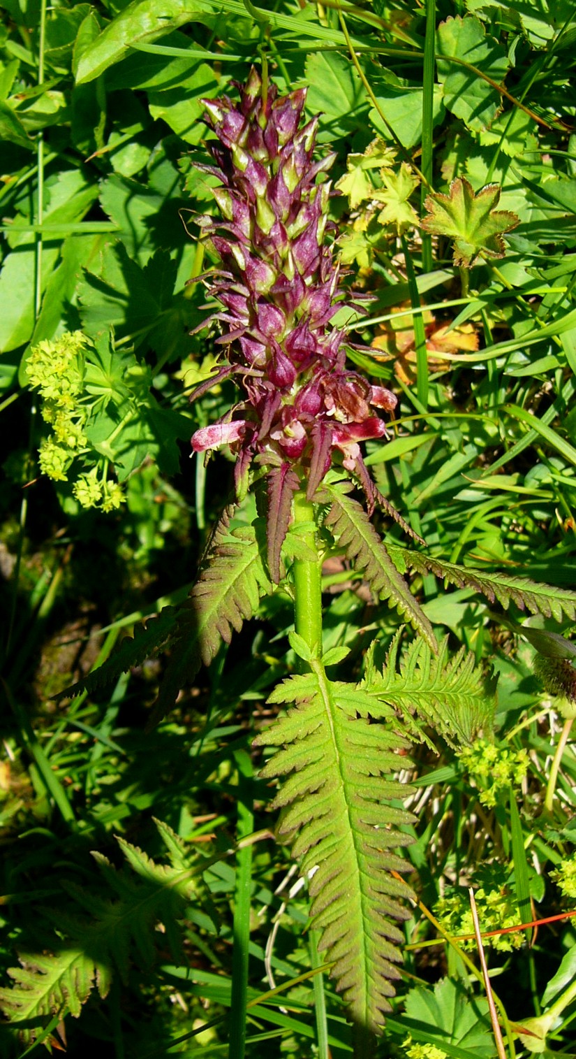 Kelch kahl, glockig, untere Deckblätter fiederspaltig Krone braunrot, Oberlippe ungeschnäbelt