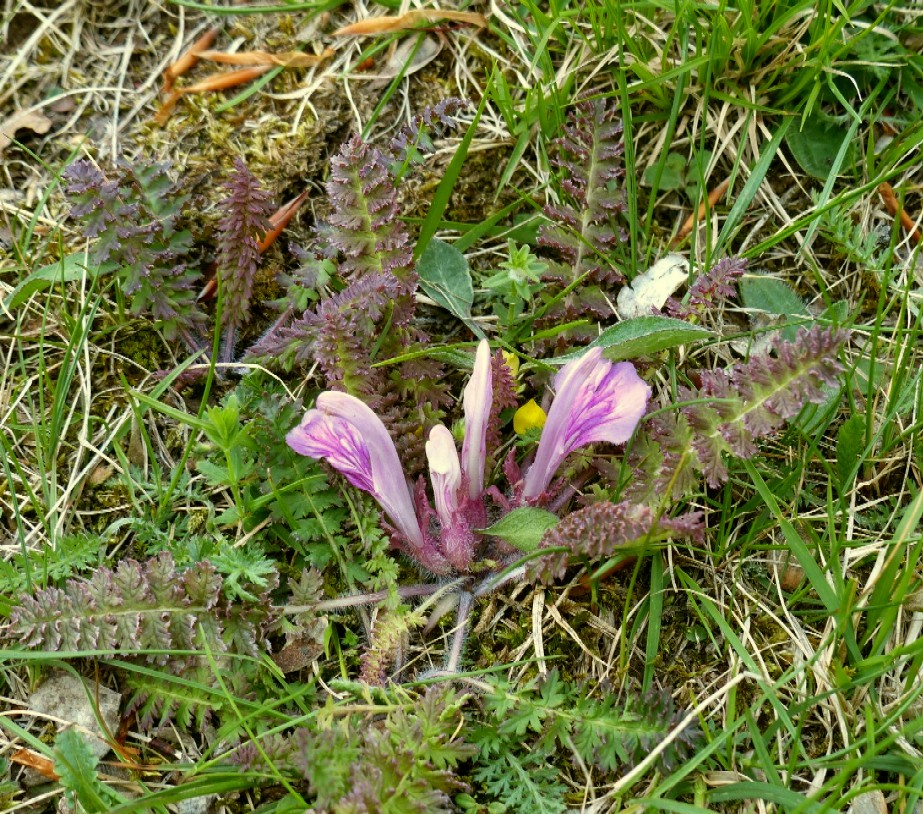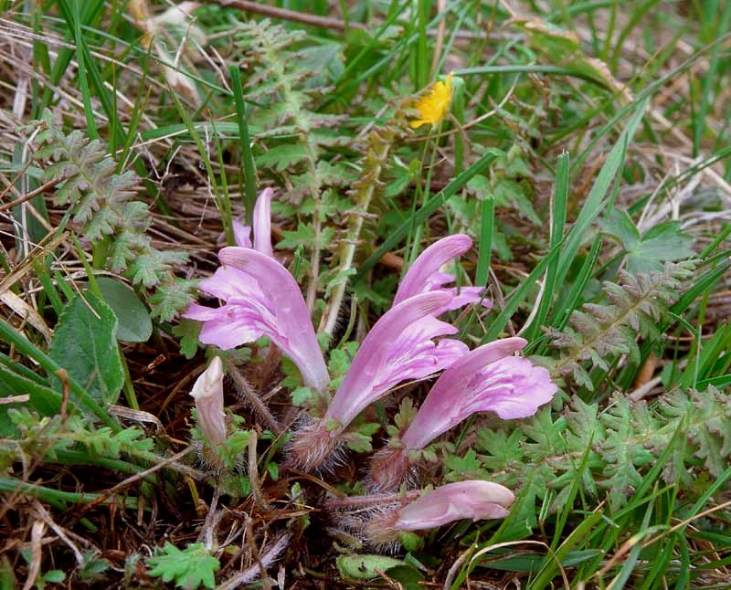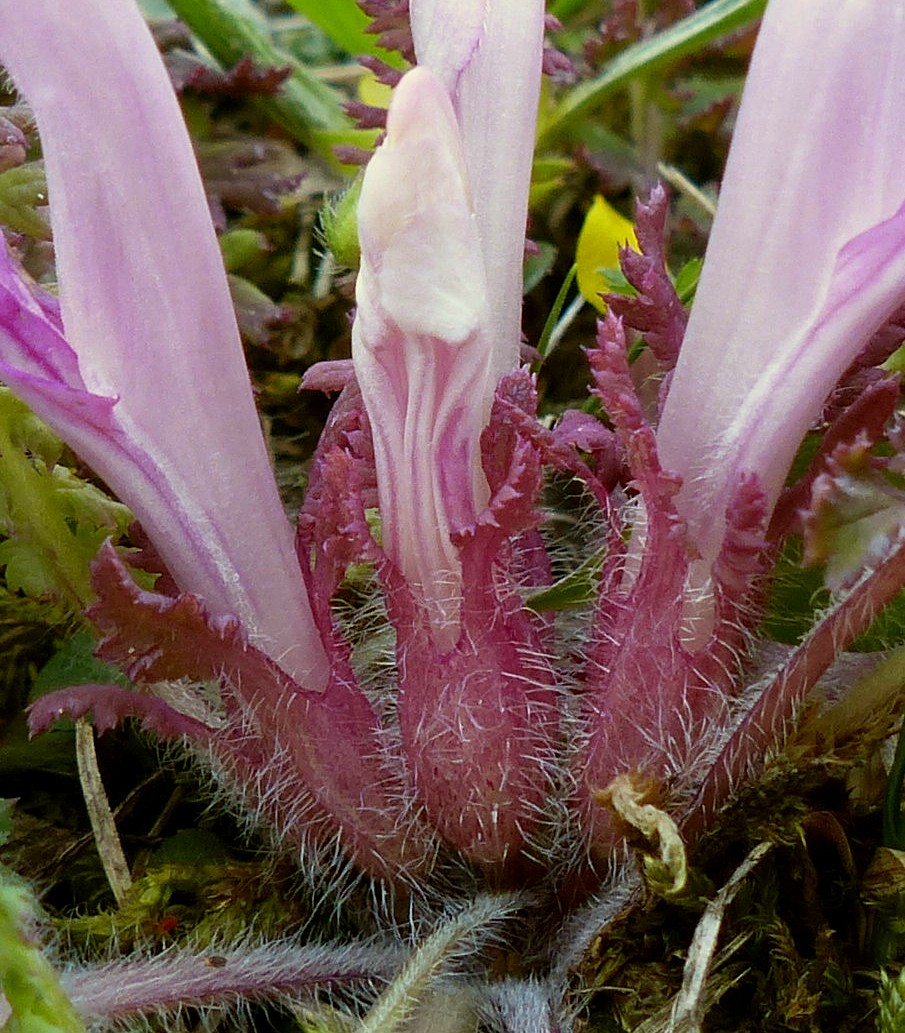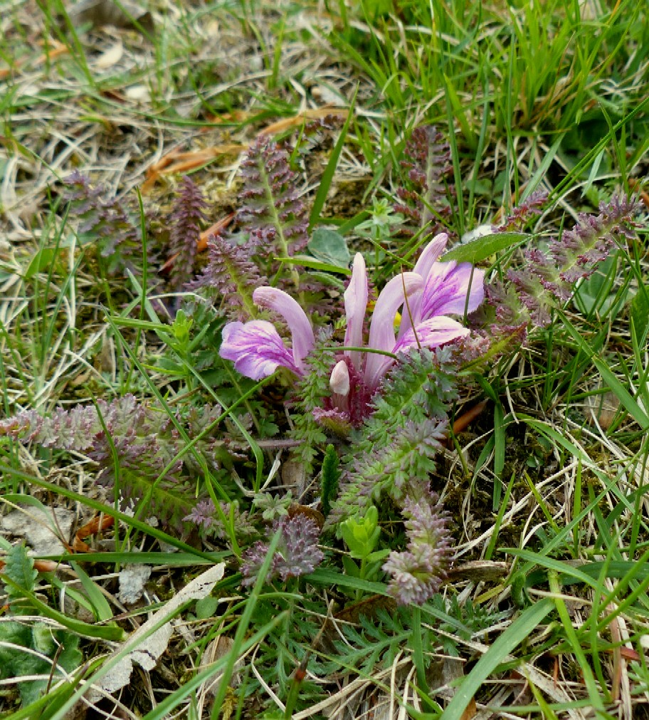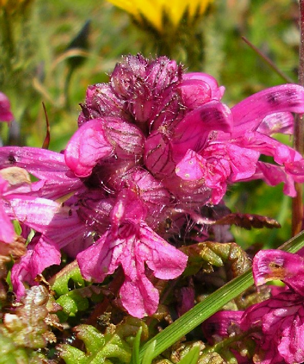 Pedicularis - Blüten rot oder rosa, Oberlippe +/- gerade, abgerundet, ohne Schnabel, mit oder ohne seitliche Zähne