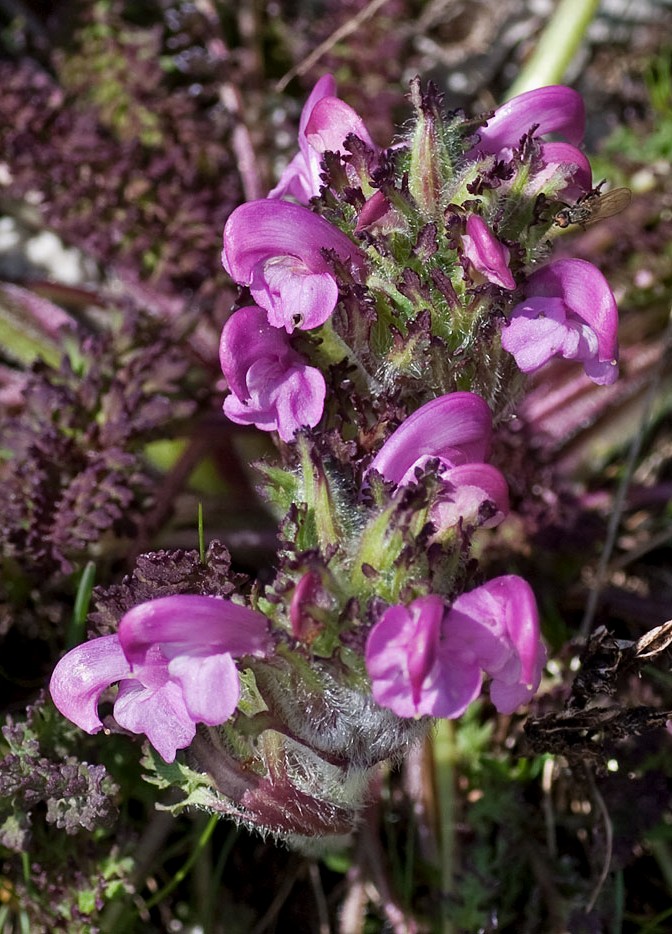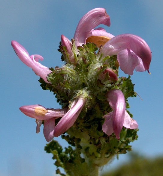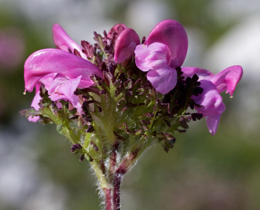 Obere Tragblätter fiederteilig, dicht behaart, ca. so lang wie der Kelch