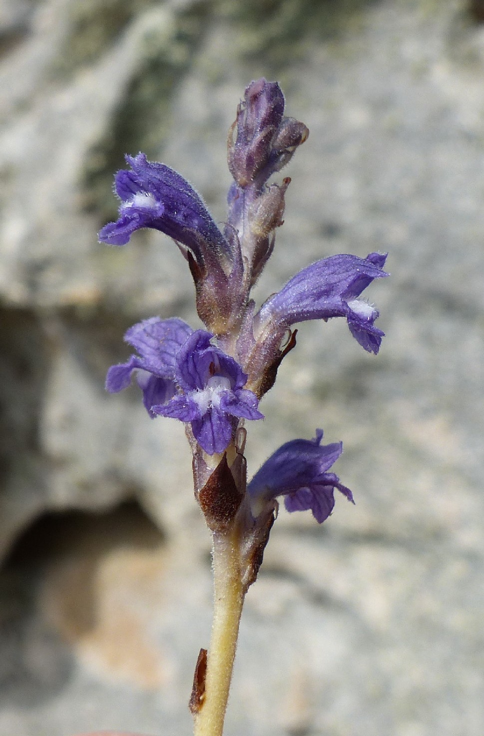 Phelipanche - Blüten blau oder violett, Kelch und Stängel im oberen Teil nicht weißwollig