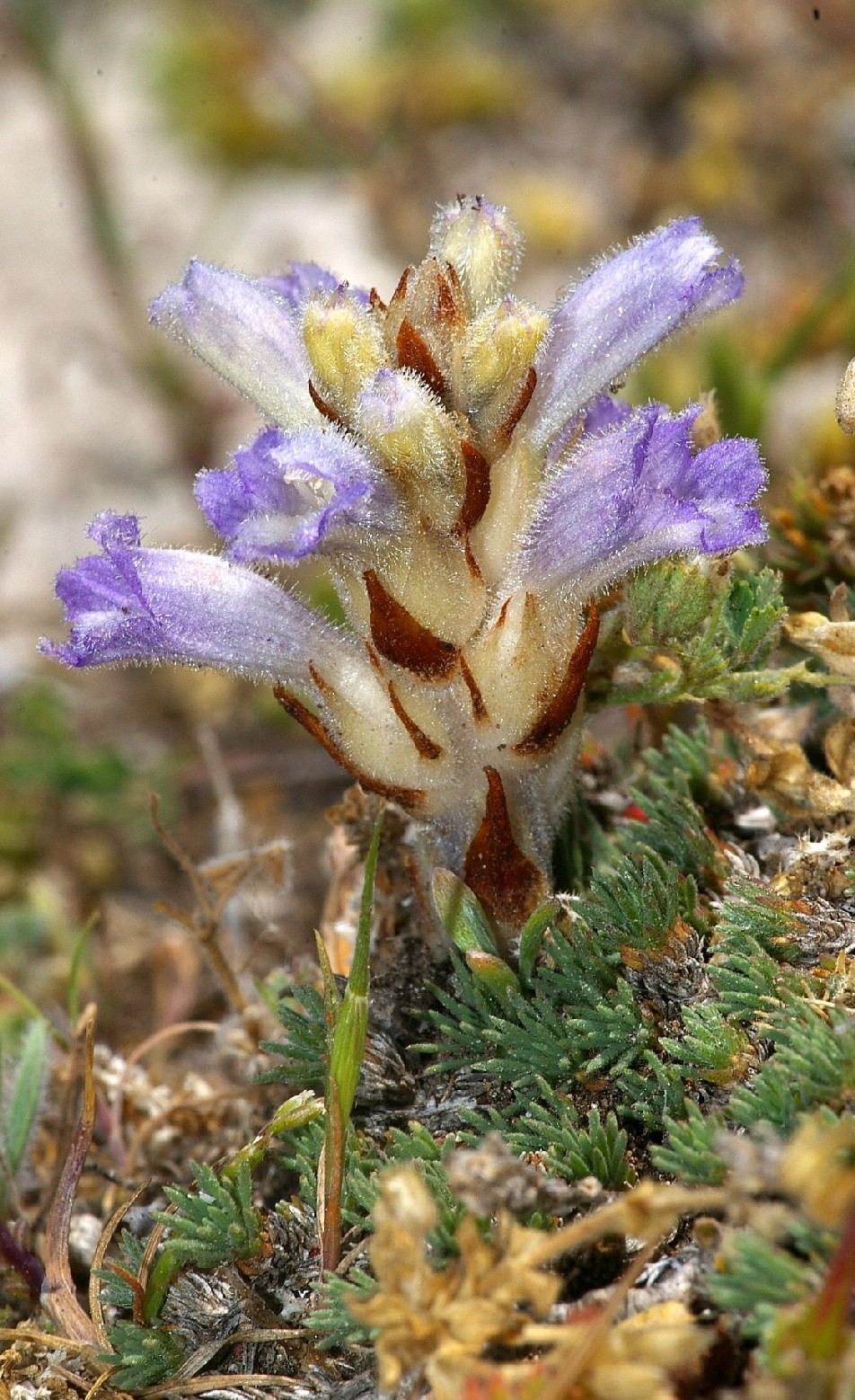 Phelipanche - Blüten hellblau oder violett, im Schlund +/- gleichfarbig, Kelch und Stängel im oberen Teil nicht weißwollig