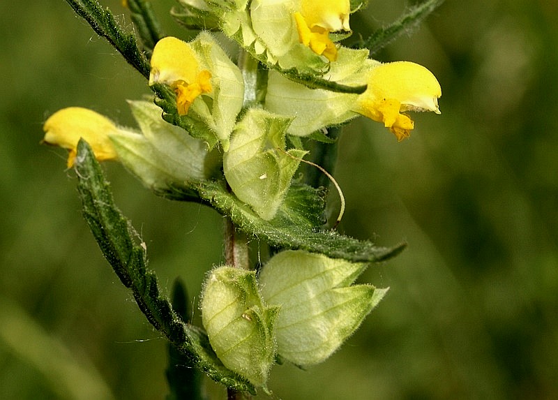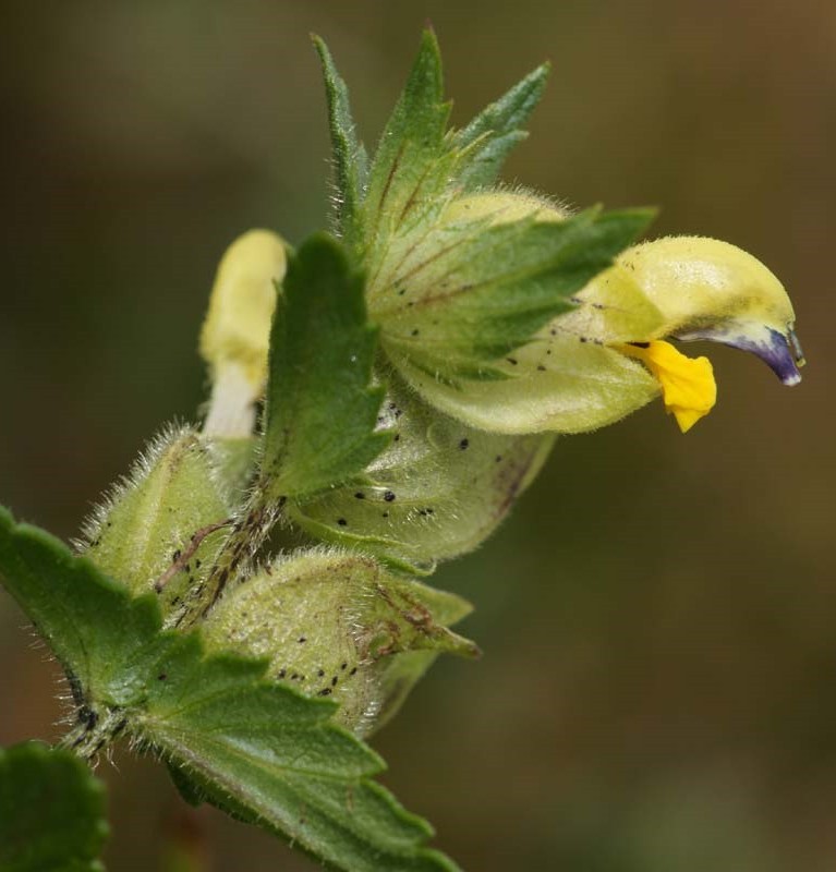 Rhinanthus- Zahn der Kronoberlippe groß (1,5 - 2,5 mm), länger als breit, Kelch behaart oder drüsenhaarig, Schlund offen