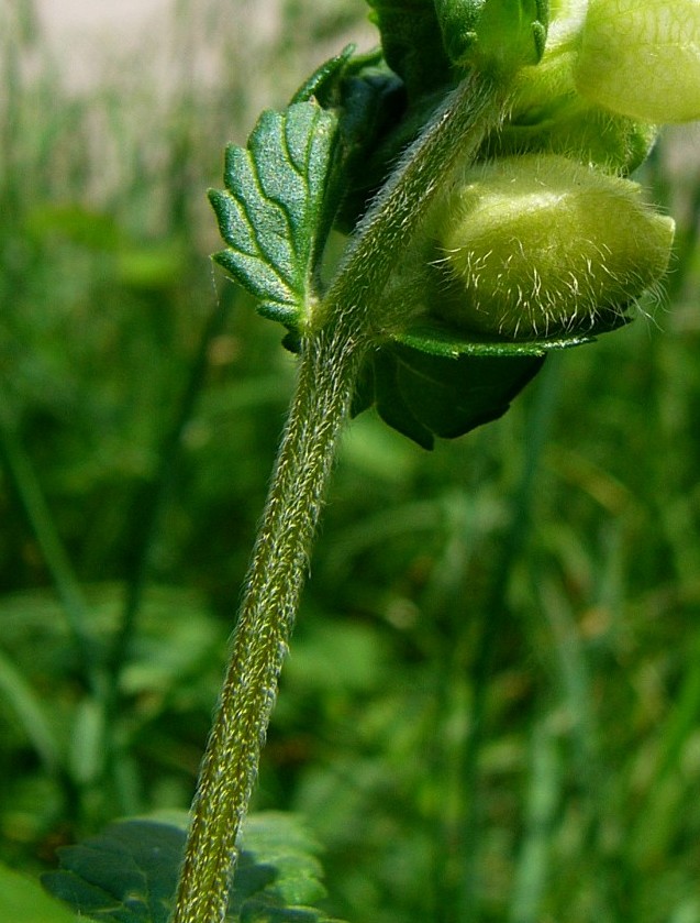 kürzer als der Kelch Zähnchen groß (1 - 2 mm) Kelch behaart Zähne der Hochblätter alle gleich lang, unbegrannt Stängel zottig behaart, nicht schwarz gestrichelt Blätter zugespitzt, scharf gesägt, nicht drüsig