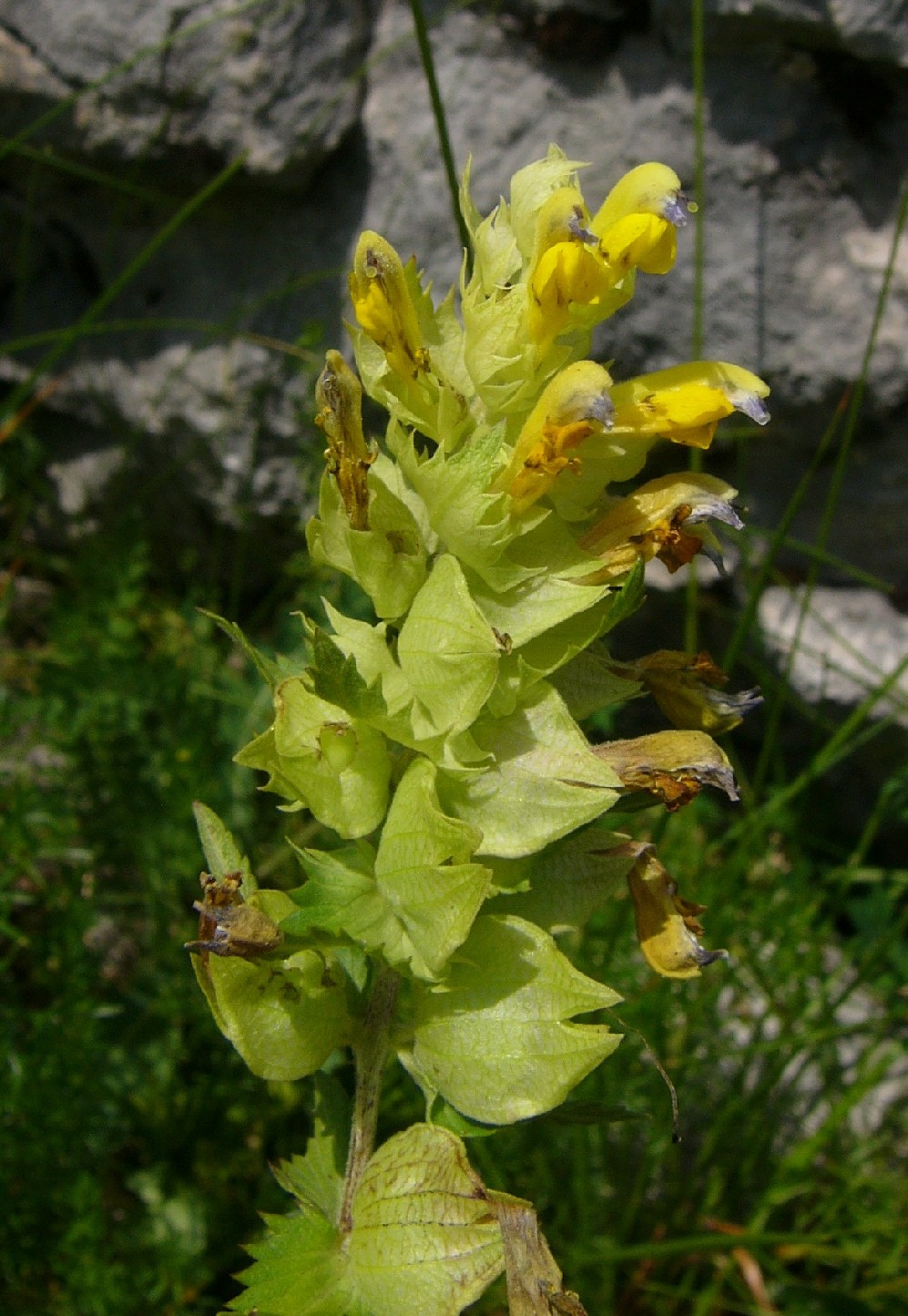 Rhinanthus - Zahn der Kronoberlippe groß (1,5 - 2,5 mm), länger als breit, Kelch angedrückt kurzhaarig