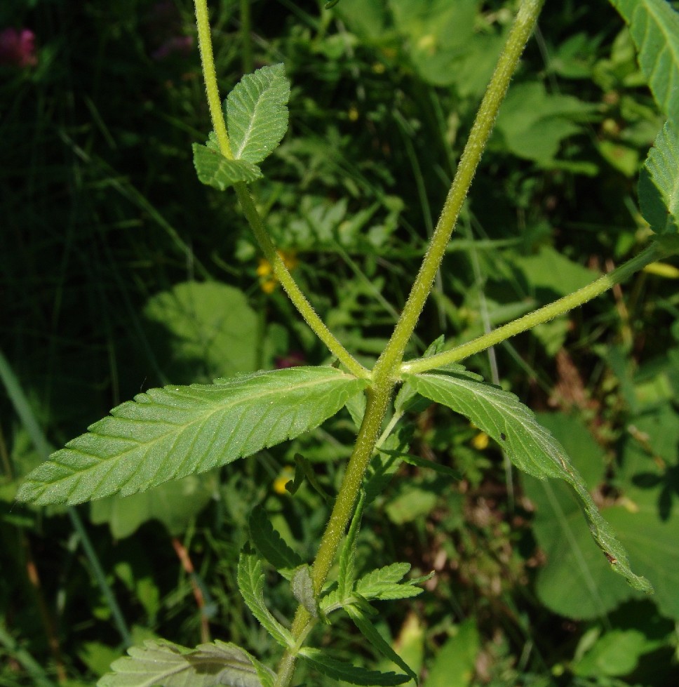 Stängel mit schwarzen Strichen, auf 2 gegenüberliegenden Seiten behaart