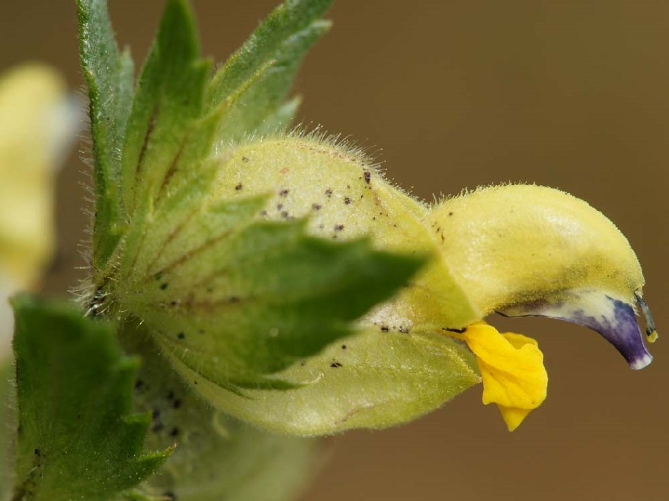 Rhinanthus- Zahn der Kronoberlippe groß (1,5 - 2,5 mm), länger als breit, Kelch behaart oder drüsenhaarig