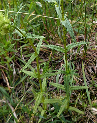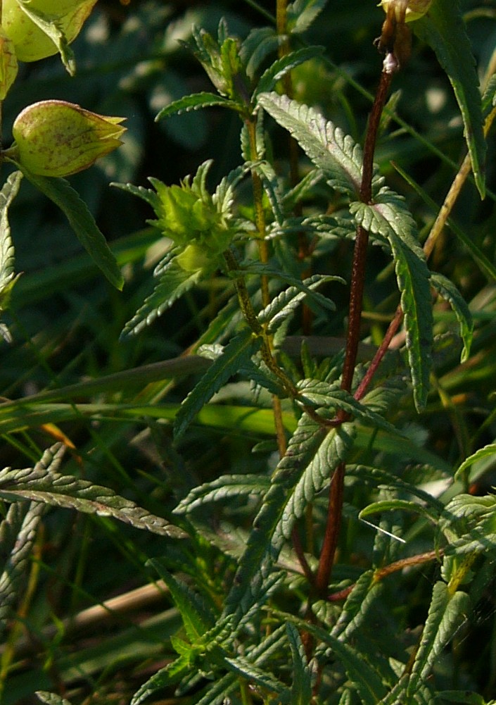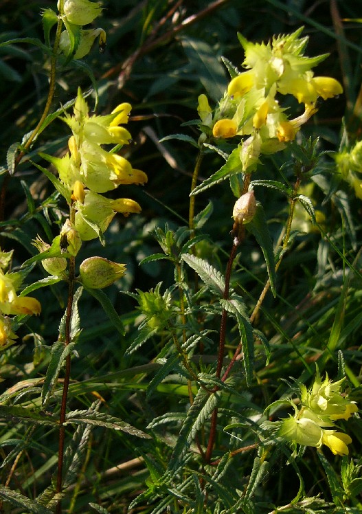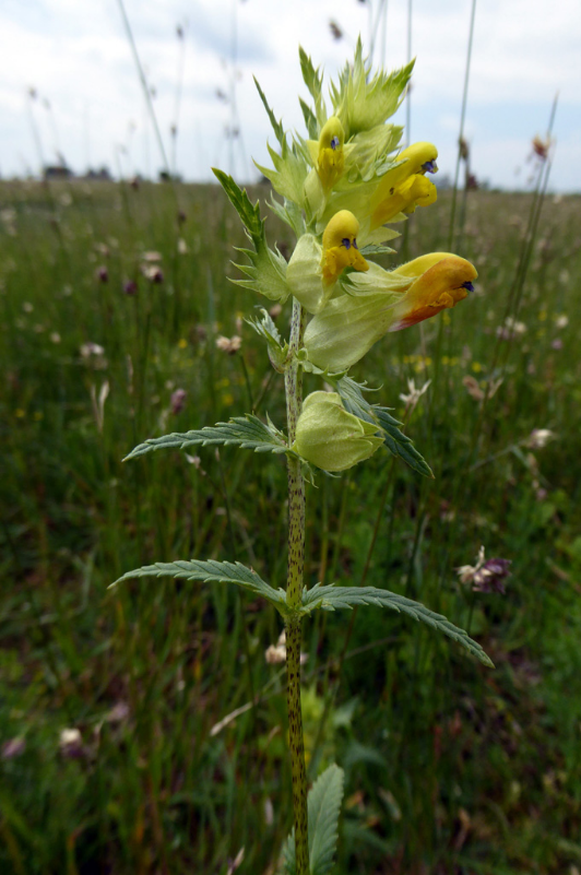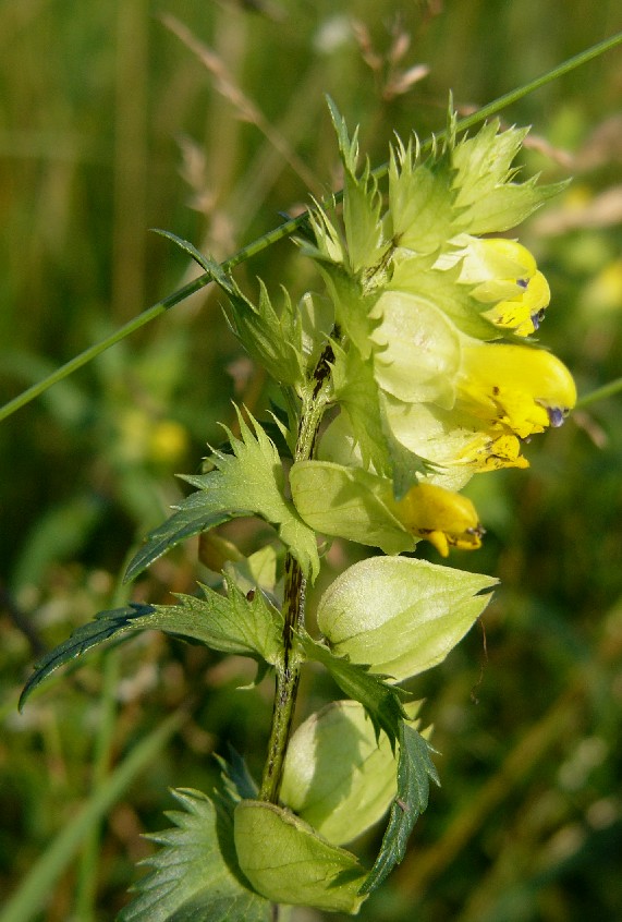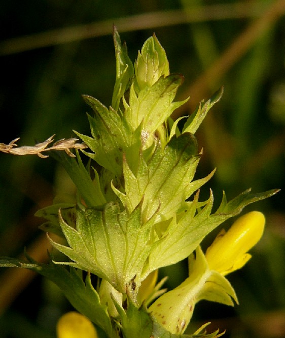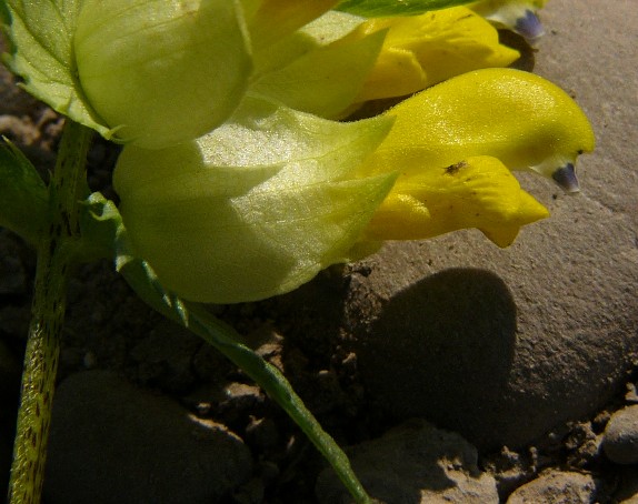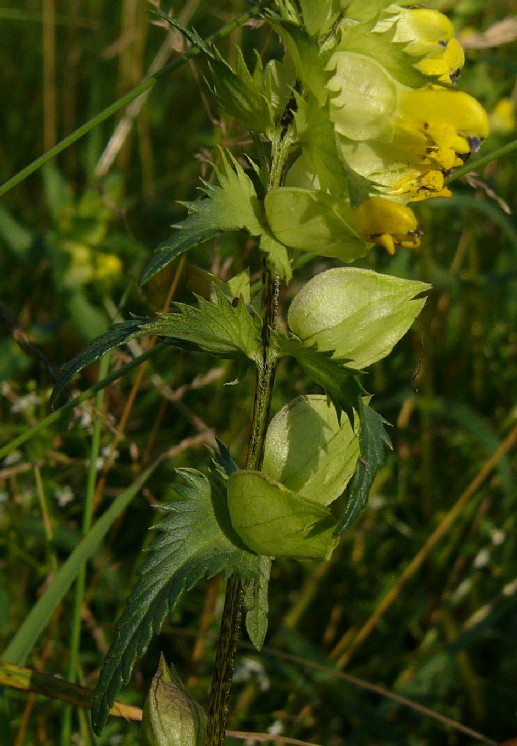 Rhinanthus - Zahn der Kronoberlippe groß (1,5 - 2,5 mm), länger als breit, Kelch auf der Fläche kahl, Schlund geschlossen