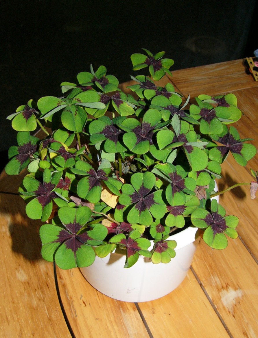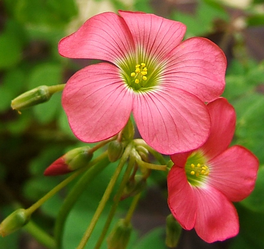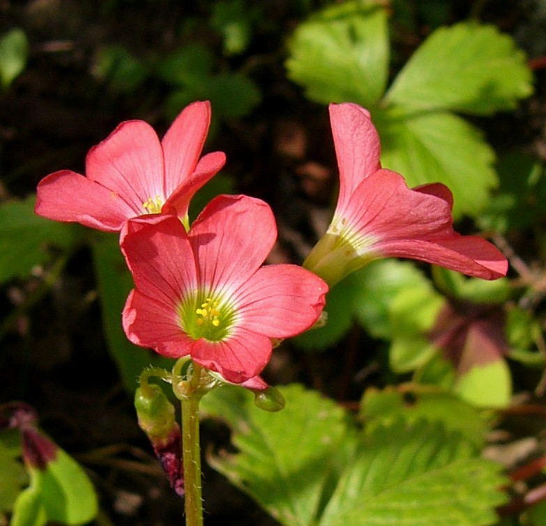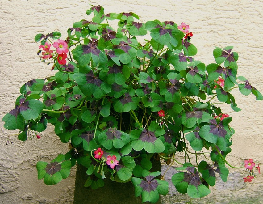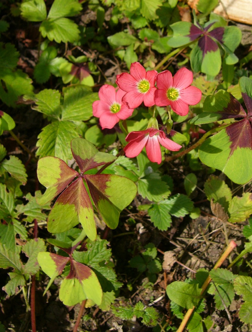 Oxalis - Blüten dunkelosa, Blätter mit 4 Blättchen