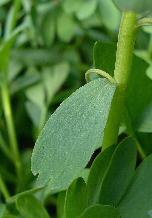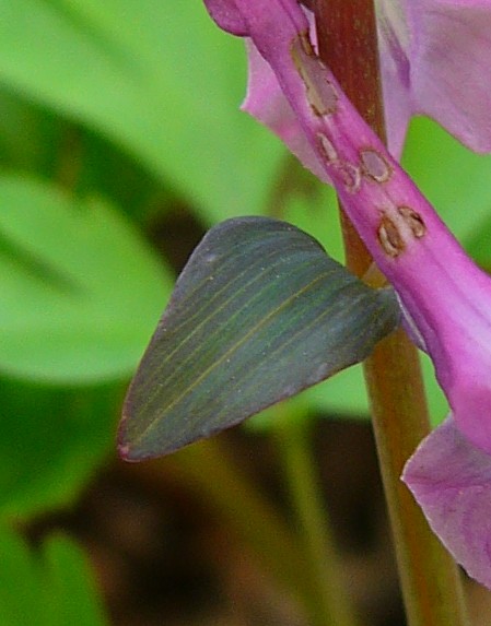 Corydalis - Pflanze +/- zierlich, mit Sprossknolle, Stängel unverzweigt, mit 2 Stängelblättern