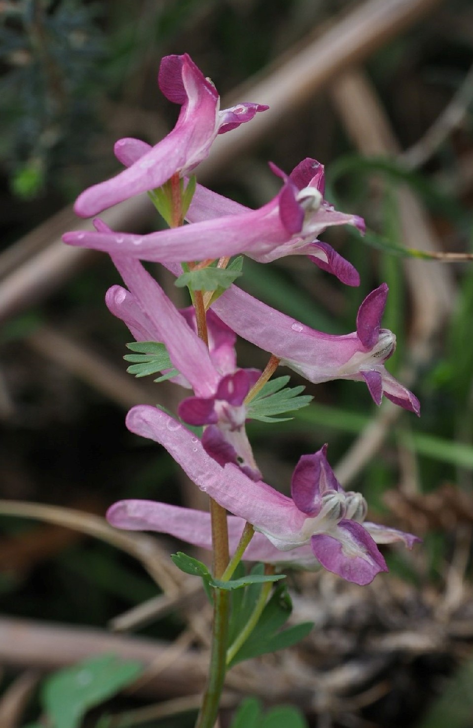 zierlich, mit Sprossknolle, Stängel unverzweigt, mit 2 Stängelblättern,