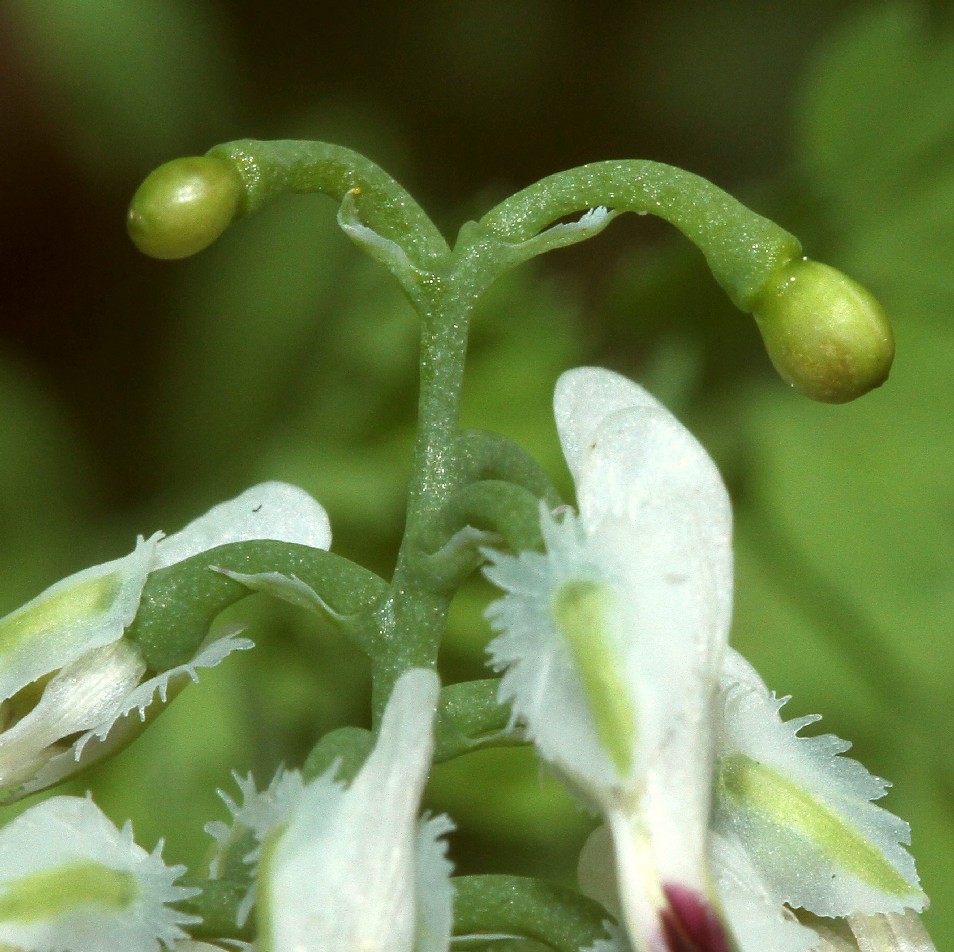Krone vor der Bestäubung weiß, dann rosa, an der Spitze purpurrot Unteres Kronblatt vorne nicht löffelförmig verbreitert