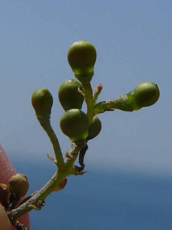 Trockene Früchte glatt, mit kleinem Spitzchen Blätter 2-fach gefiedert, Blattstiele der Teilblättchen manchmal rankend,