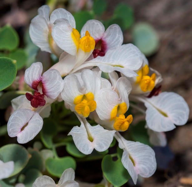 Schlund und innere Kronblätter anfangs gelb rot werdend, Kronunterlippe mit breiten, abstehenden Flügeln > Sarcocapnos